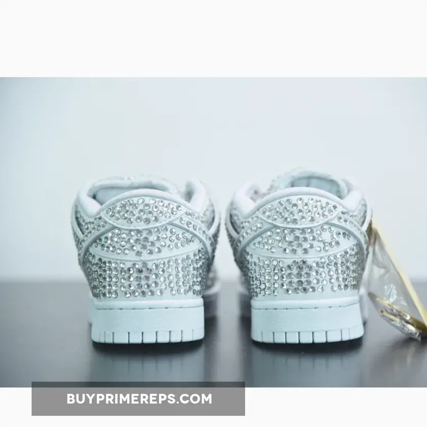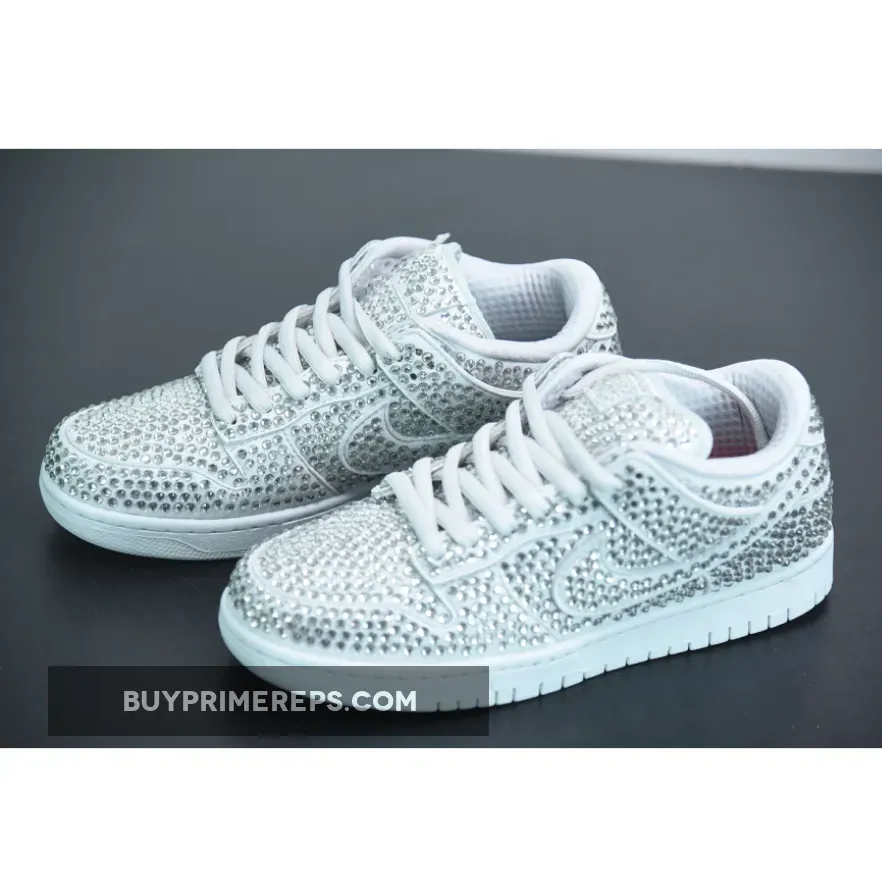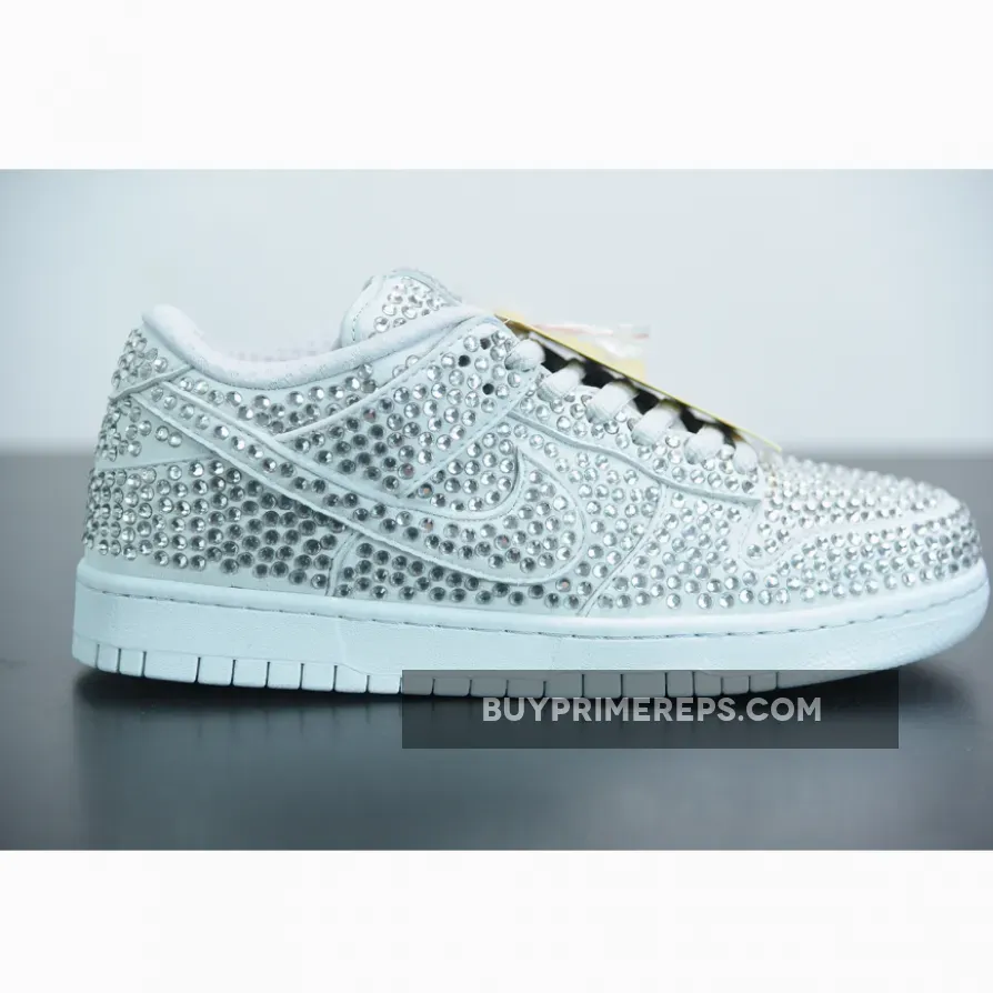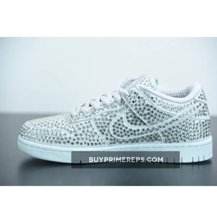 The CPFM Dunk Low Swarovski Crystals come in a stunning “Pure Platinum” colorway, which instantly grabs attention. What sets this sneaker apart is the use of Swarovski crystals that cover the entire shoe. The crystals sparkle and shine, creating a luxurious and glamorous look. It’s a bold and daring design choice that adds a touch of opulence to the iconic Dunk silhouette.