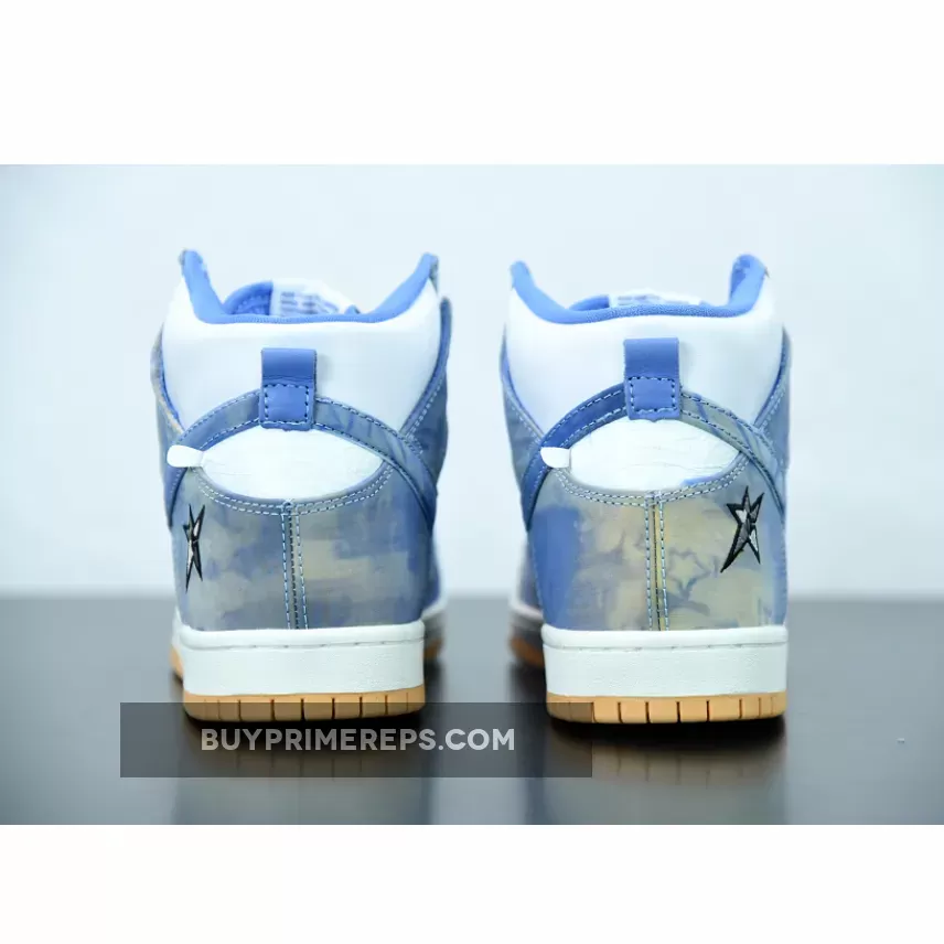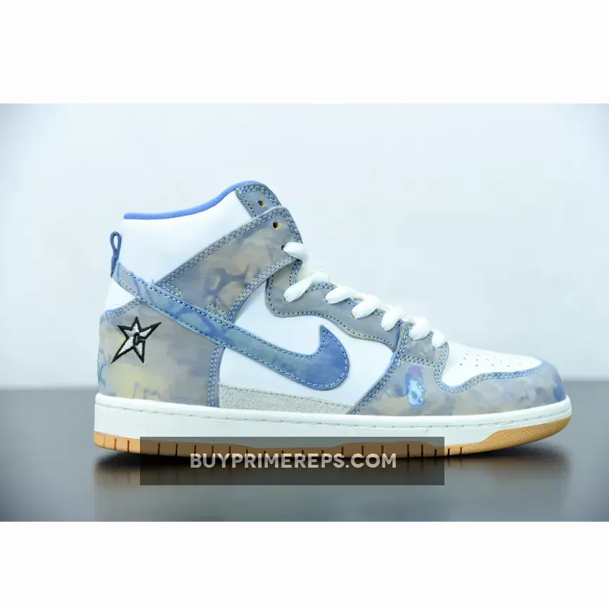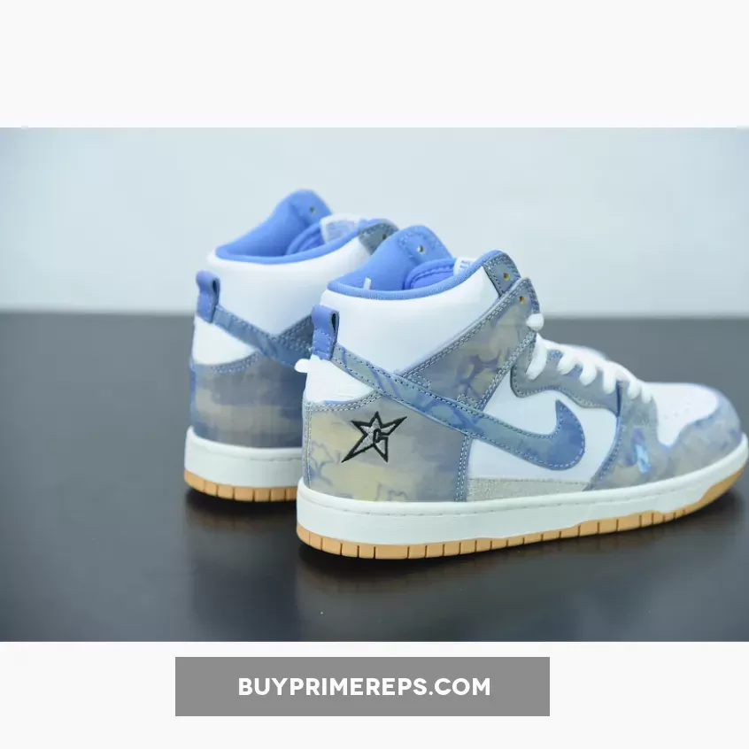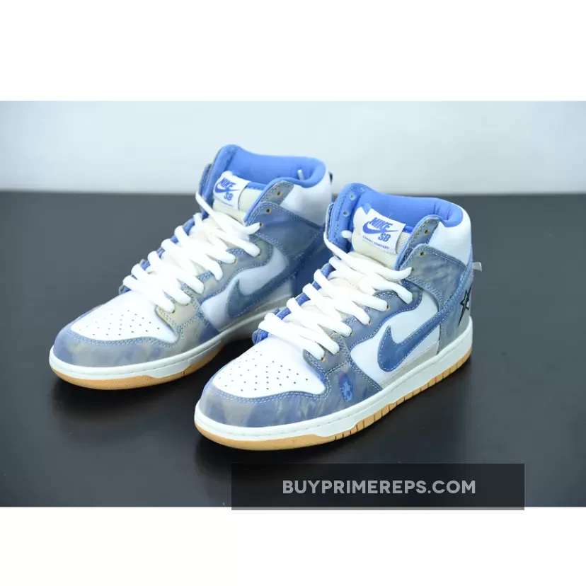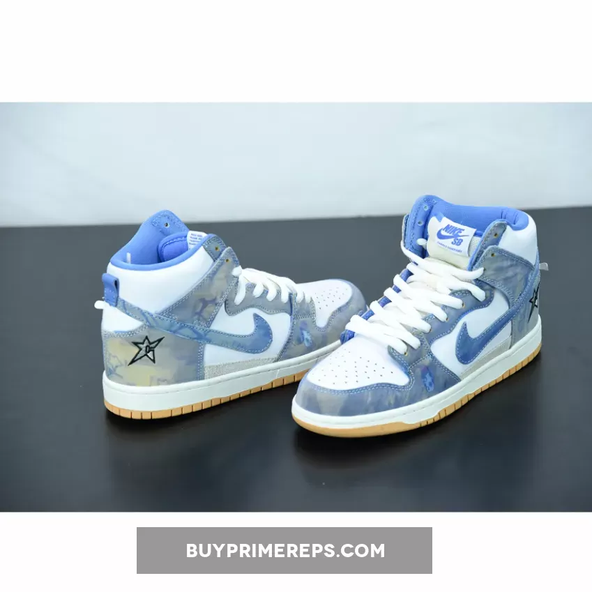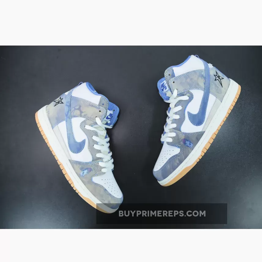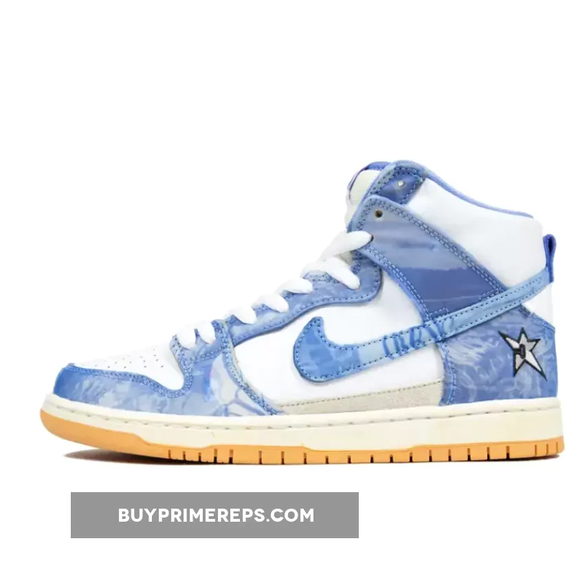 The Carpet Company x Nike Dunk High White Royal Pulse is a highly anticipated collaboration between Nike and Baltimore-based skate label Carpet Company. Known for their unique 1-of-1 tees and customized skateboards, Carpet Company brings their DIY energy to the iconic Nike Dunk silhouette.
