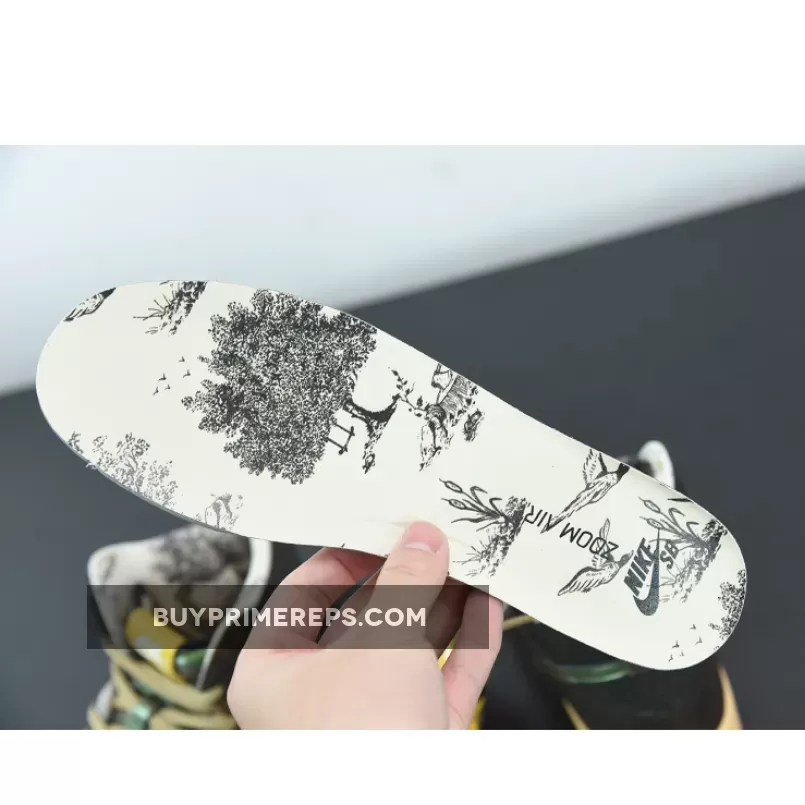 Inside the shoe, Concepts branding comes to life with a scenic toile print on the insole and collar lining. This print depicts a tranquil landscape, further emphasizing the connection to nature and the outdoors. It adds an extra layer of storytelling to the shoe, making it more than just a sneaker.