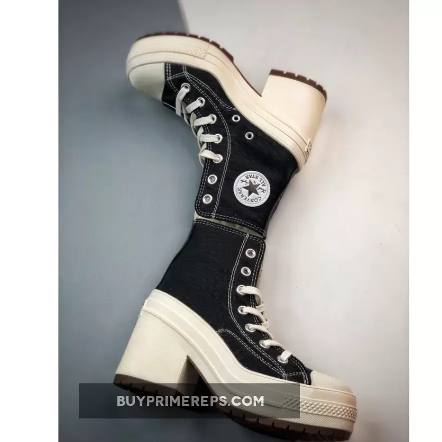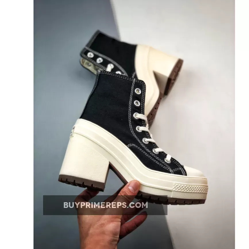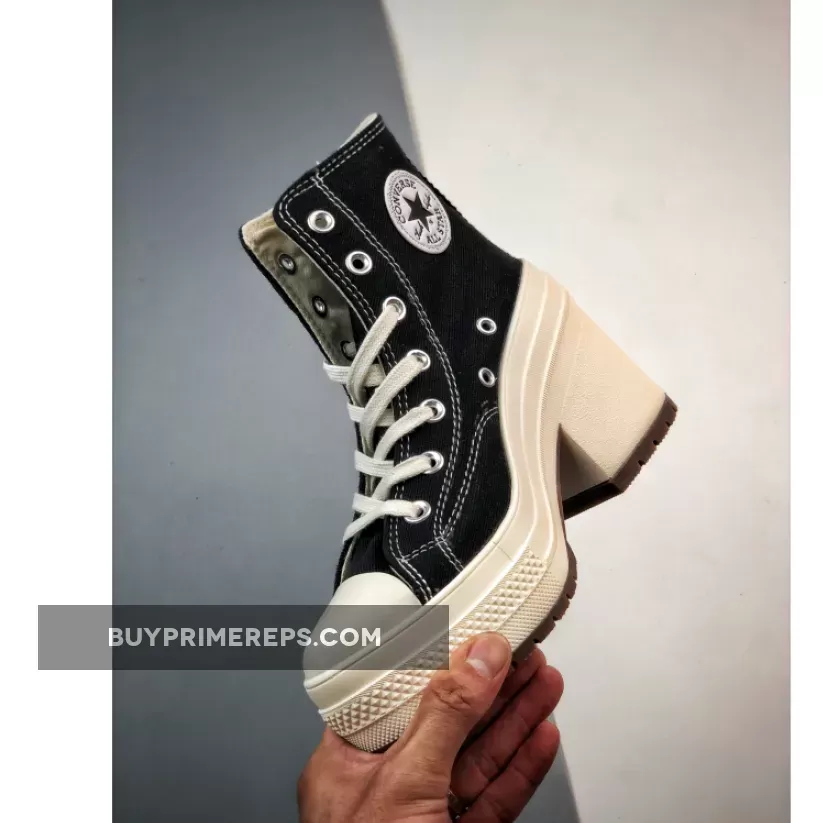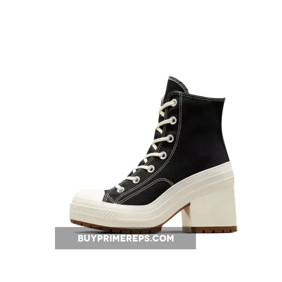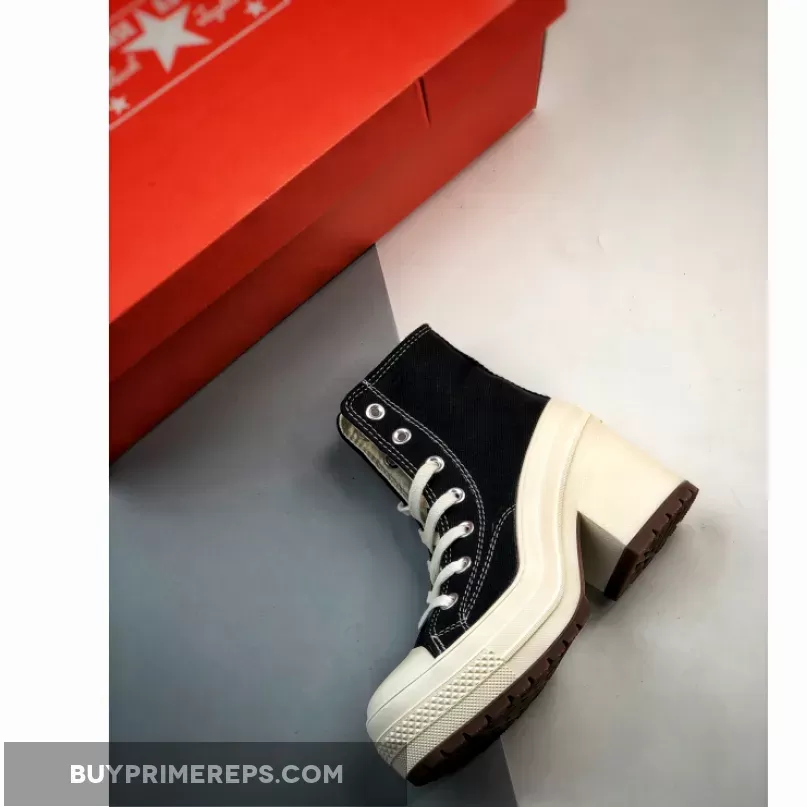 Introducing the latest addition to the Converse lineup, the Chuck 70 De Luxe Heel. This shoe combines the classic sneaker design with a platform heel, creating a unique and stylish look.