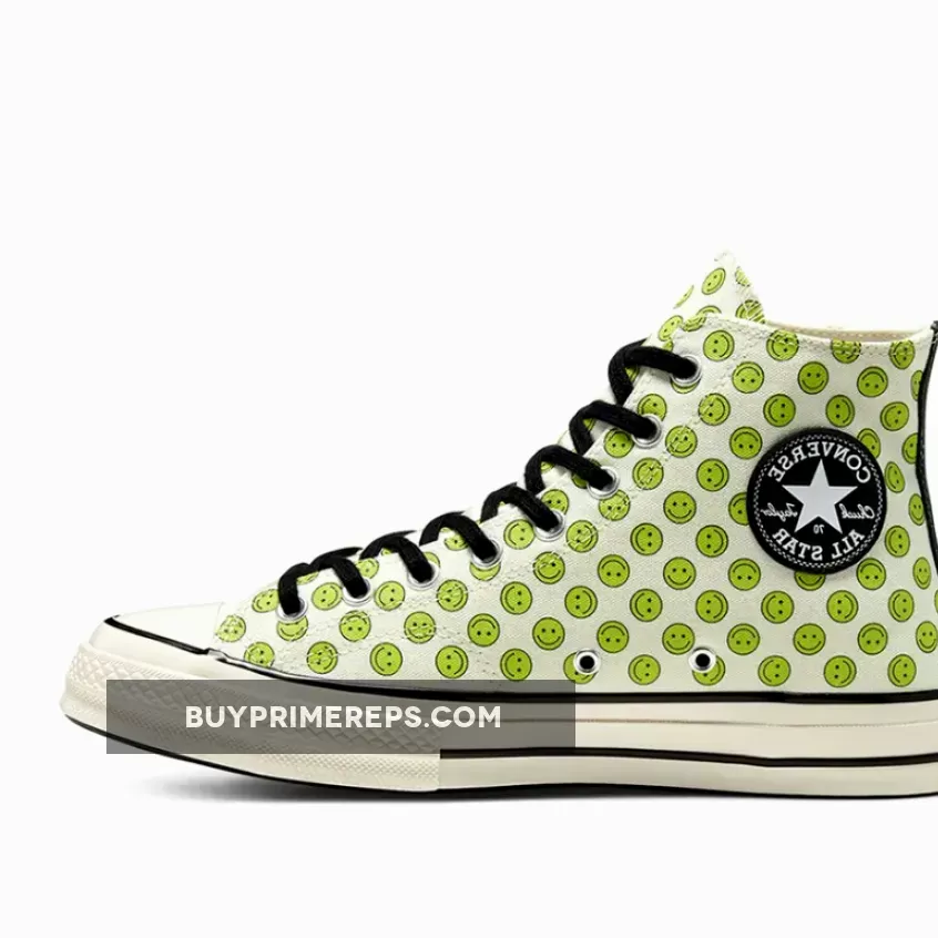 Don’t miss out on the opportunity to own this special release. The Converse Happy Camper Chuck Taylor All-Star 70s Hi Lemongrass is available now, but sizes are limited. Embrace the good vibes and grab a pair of these sneakers today to add a dose of positivity to your style. Let the happy faces on your shoes remind you to stay positive and spread good energy wherever you go.