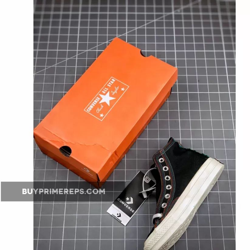 Overall, the Converse Chuck 70 Hi All Star Layers Black is a bold and vibrant sneaker that combines classic design with unique detailing. Its colorful stitching and black canvas create a striking contrast, making it a must-have for those who want to make a statement with their footwear.