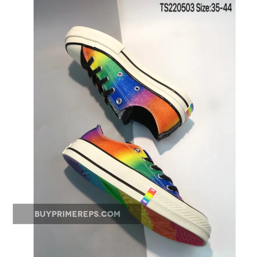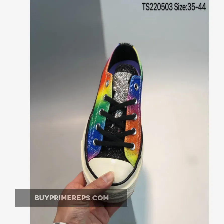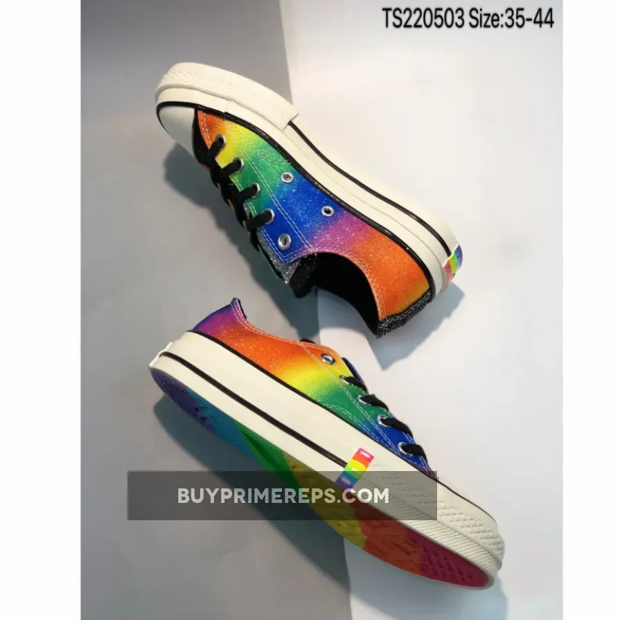 In conclusion, the Converse Chuck 70 Low Top Multi Pride is a vibrant and eye-catching sneaker that celebrates diversity and inclusivity. With its rainbow print, glitter-drenched upper, and unique design details, it is a true symbol of pride and support for the LGBT community. Don’t miss your chance to own this limited-edition sneaker and make a statement with your footwear.
