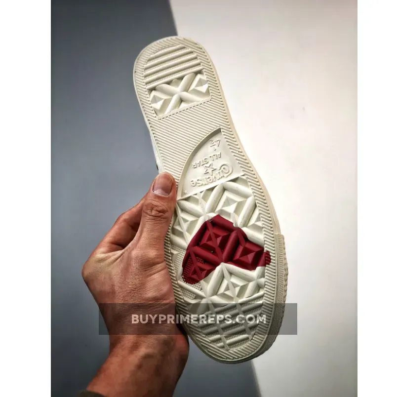 To complete the design, the shoe has an Egret-colored sole unit with burgundy All Star-branded heel badges. This combination of colors adds depth and contrast to the overall look of the shoe, making it visually appealing from every angle.