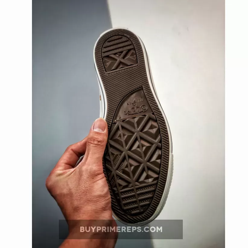 The Chuck Taylor All Star Hearts Vintage White A05139C is not only stylish but also comfortable. It features a white midsole with black accents that provide cushioning and support for all-day wear. The brown diamond-patterned rubber outsole not only adds traction but also adds a unique touch to the overall design of the shoe.