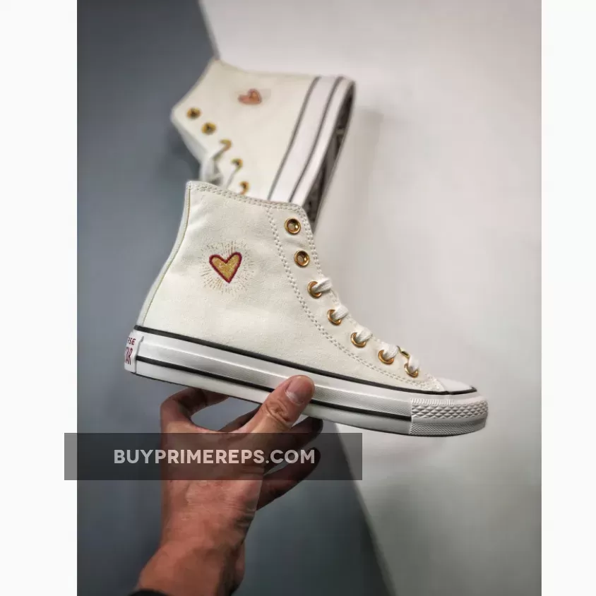 The Converse Chuck Taylor All Star Hearts Vintage White A05139C is a classic high-top sneaker that is part of Converse’s V-Day collection. Designed with love in mind, these kicks feature a durable canvas upper in a vintage white colorway.
