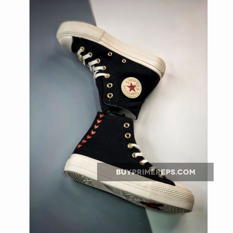 Whether you’re going for a casual streetwear look or dressing up for a special occasion, the Converse Chuck Taylor All Star Lift Platform Hearts High Top in Black is the perfect footwear choice. Its versatile design allows you to pair it with jeans, skirts, or dresses, adding a touch of edginess to your ensemble.