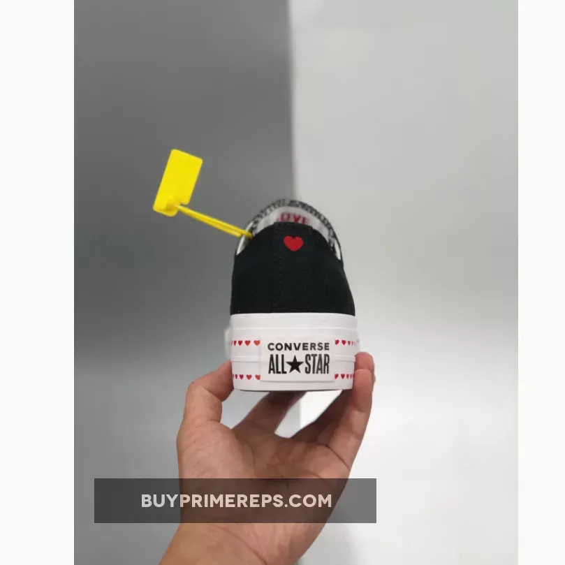 What sets the Love Fearlessly x Converse Chuck Taylor All Star Black apart is its unique detailing. Instead of the usual black lines, this sneaker showcases repeat heart details, adding a touch of love and romance to the classic Converse style. The linear heart details bring a chic and fashionable element to the shoe, making it a standout choice for any sneaker enthusiast.
