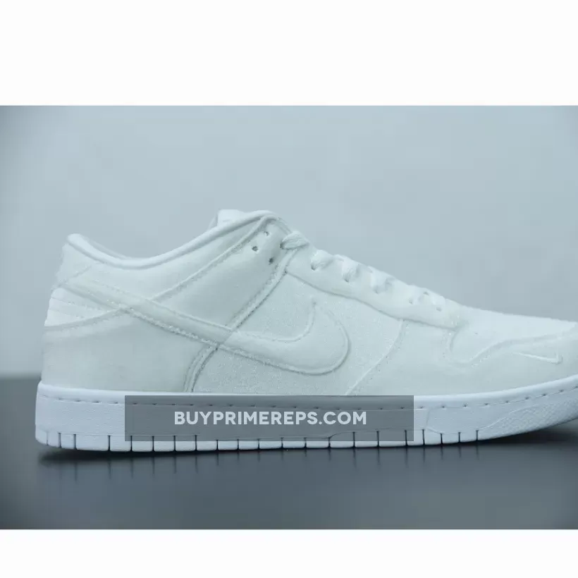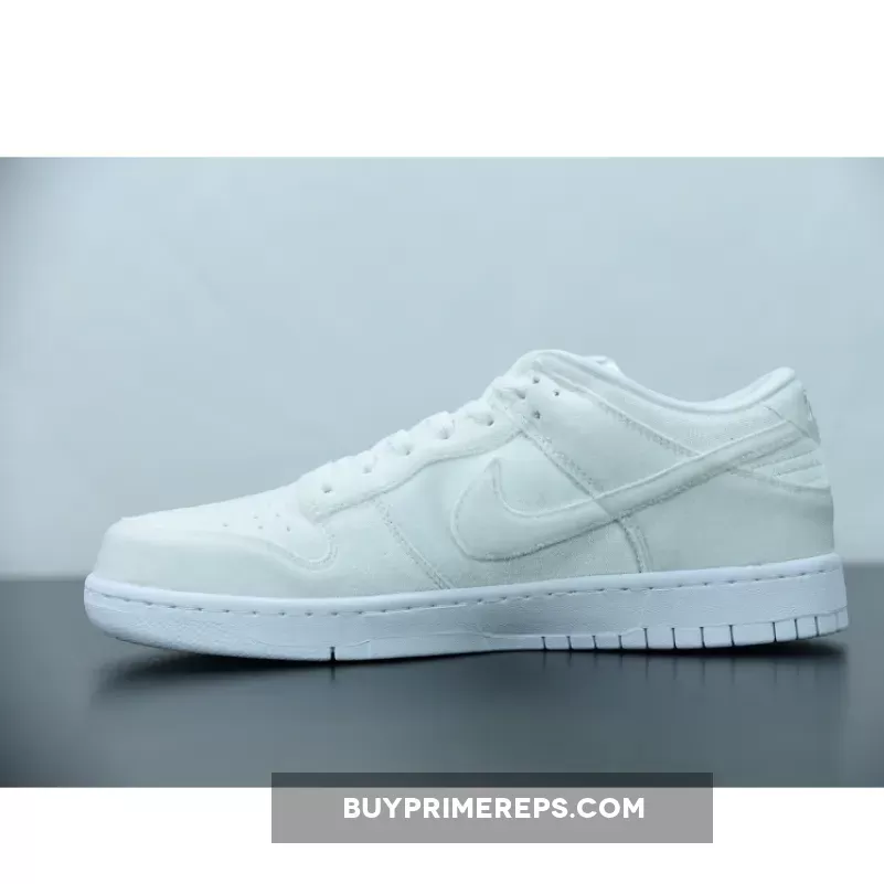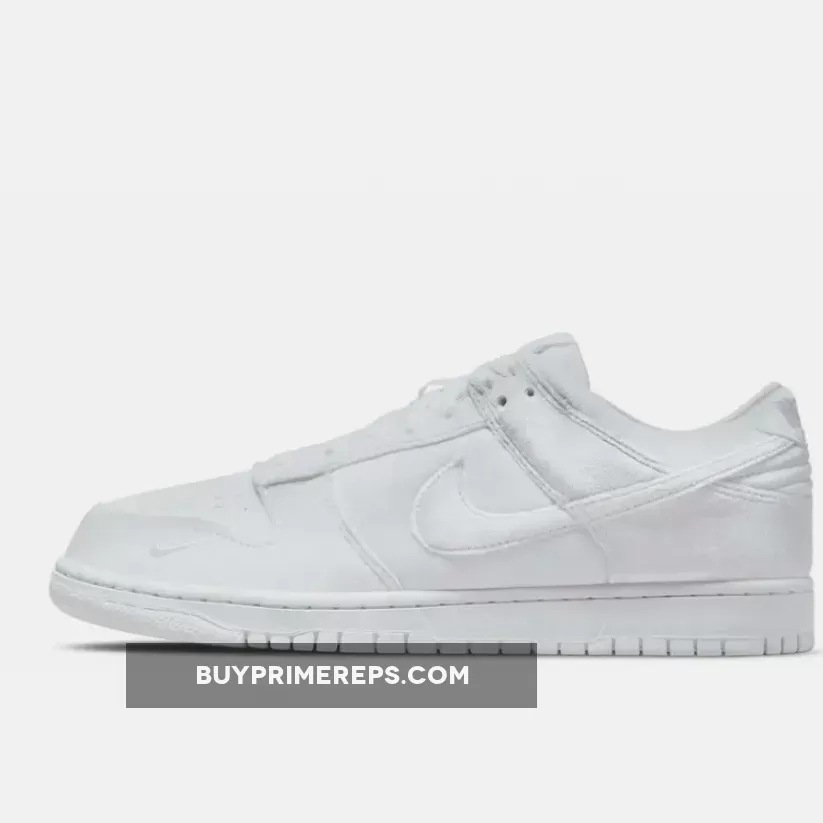 This version of the Dunk Low features a soft, velour-like material on the toe-guard, heel, and Swoosh, giving it a unique and premium look and feel. The velvety texture adds a touch of luxury to the classic design, elevating it to new heights. The bright white upper is complemented by matching ivory laces and tongues, creating a sleek and streamlined aesthetic.