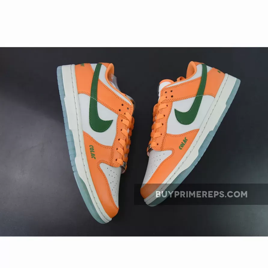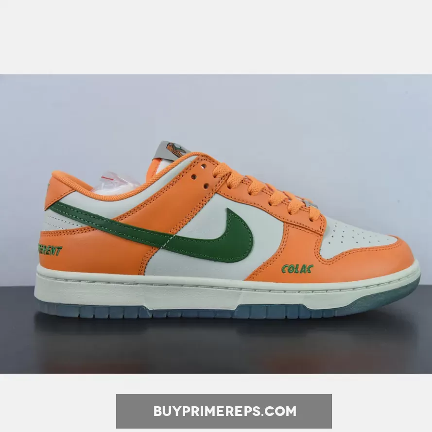 The Florida A&M x Nike Dunk Low Family showcases a vibrant colorway inspired by FAMU’s school colors. The shoe features a white leather base complemented by orange overlays, laces, and lining. Green Swoosh logos add a pop of color to the design. The tongue tabs are embroidered with FAMU’s rattlesnake mascot, representing the school’s fierce spirit and identity. Additionally, the phrase “COLAC” (College of Love and Charity) is featured below the toe box on the lateral sides, further emphasizing FAMU’s values and mission.