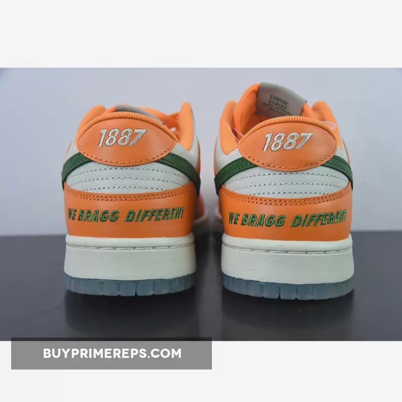 The attention to detail on this exclusive Dunk Low doesn’t stop there. The heels of the shoes are adorned with the year “1887,” commemorating the founding year of Florida A&M University. This subtle touch pays homage to the institution’s rich history and legacy. The white midsole provides a clean contrast to the vibrant colors of the upper, while also offering superior cushioning for added comfort.