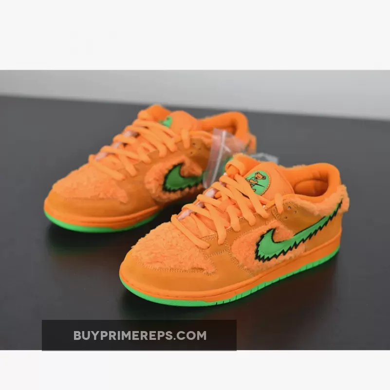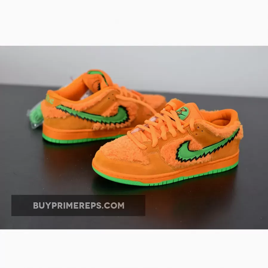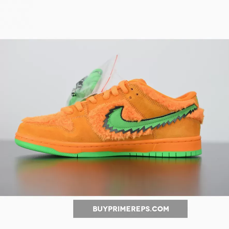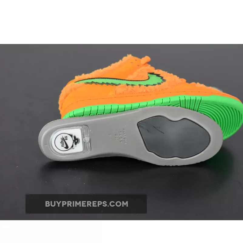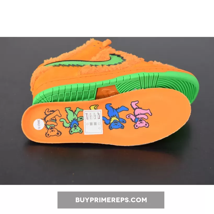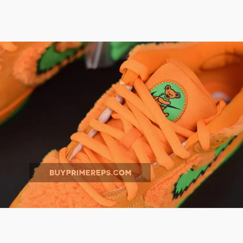 One of the standout features of the Grateful Dead x Nike SB Dunk Low Orange is the green Swoosh logo that runs across the lateral and medial sides of the shoe. This contrasting color adds a pop of vibrancy and complements the orange perfectly. It’s a unique twist on the classic Nike branding that fans of both brands will appreciate.