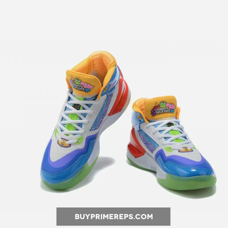 Inspired by Kawhi Leonard’s favorite childhood candy, this limited-edition capsule features vibrant colors and playful graphics that will make you feel like a kid again. The KAWHI sneaker takes center court with its “Assorted Flavors” colorway, showcasing a mix of animated blue, green, red, and yellow hues.