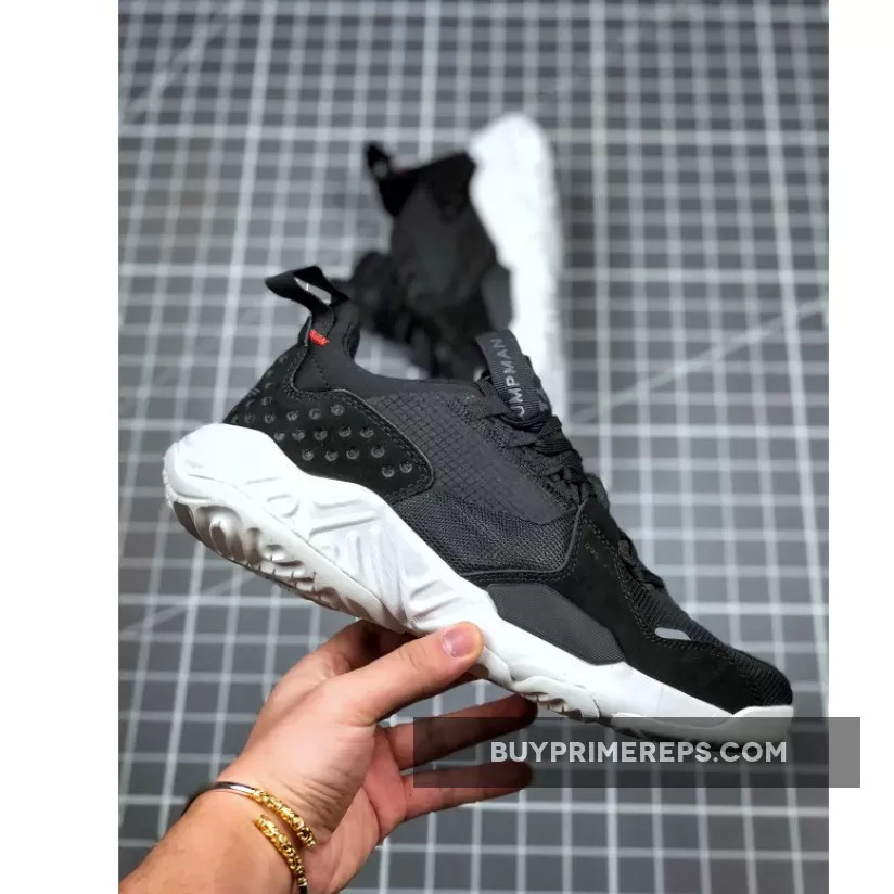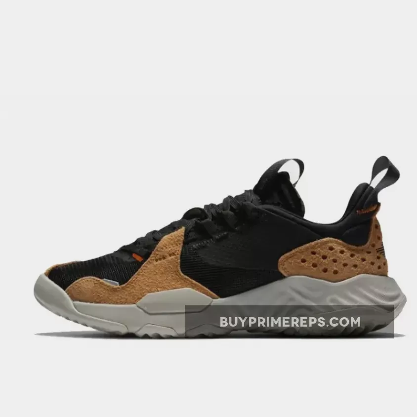 The Jordan Delta Black Flax is a highly-anticipated release from Jordan Brand, offering a sleek and modern design packed with high-end features. This low-cut model showcases a striking black upper constructed of breathable mesh, allowing for optimal airflow and comfort. The addition of suede and synthetic overlays adds a touch of sophistication to the overall aesthetic, while minimal red stitching on the heel provides subtle contrast.