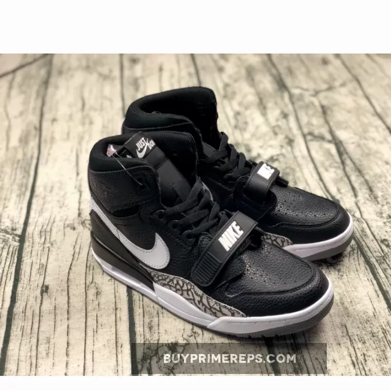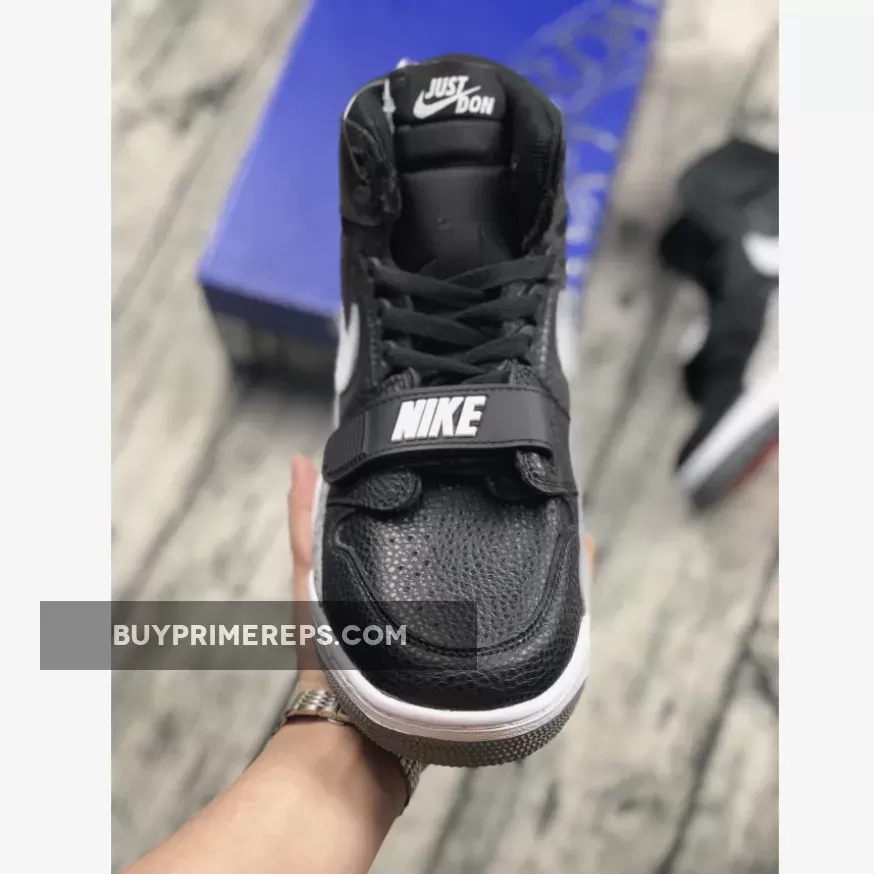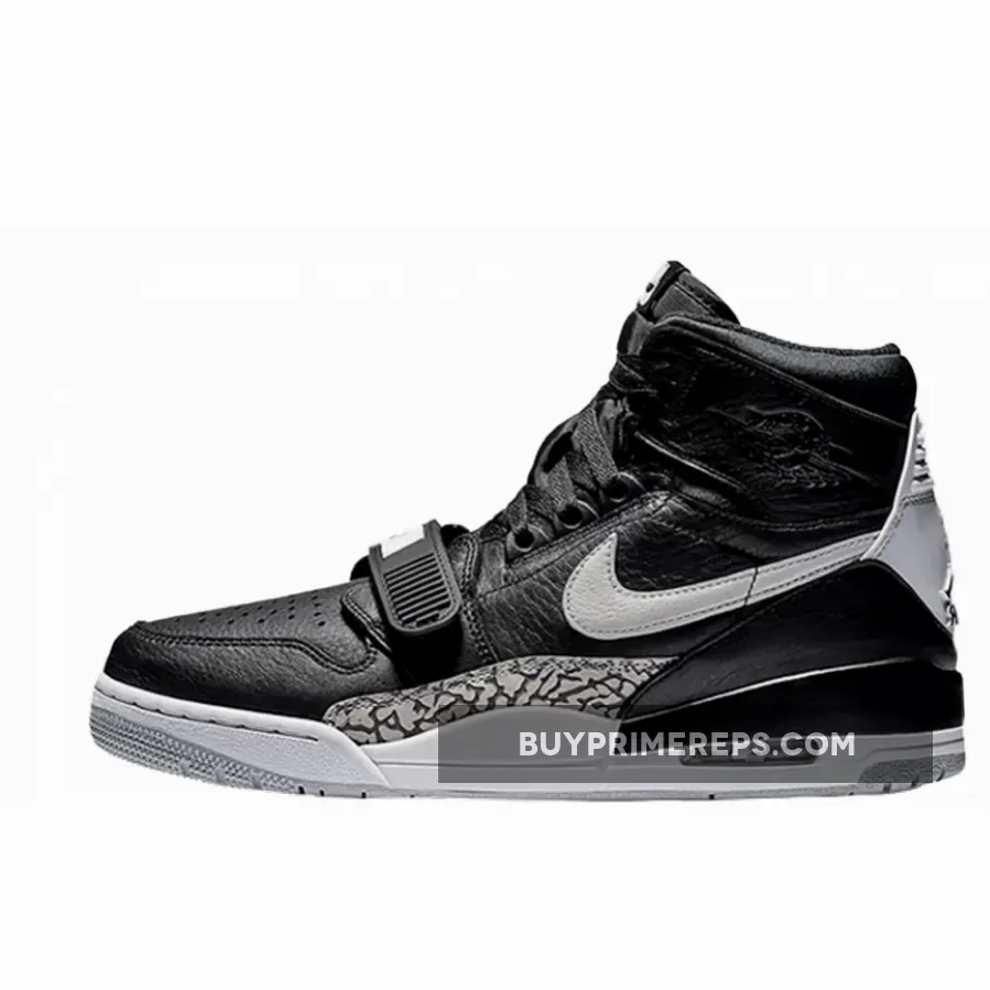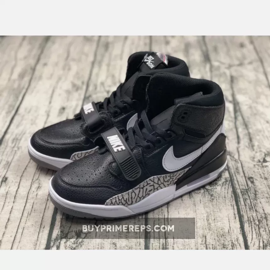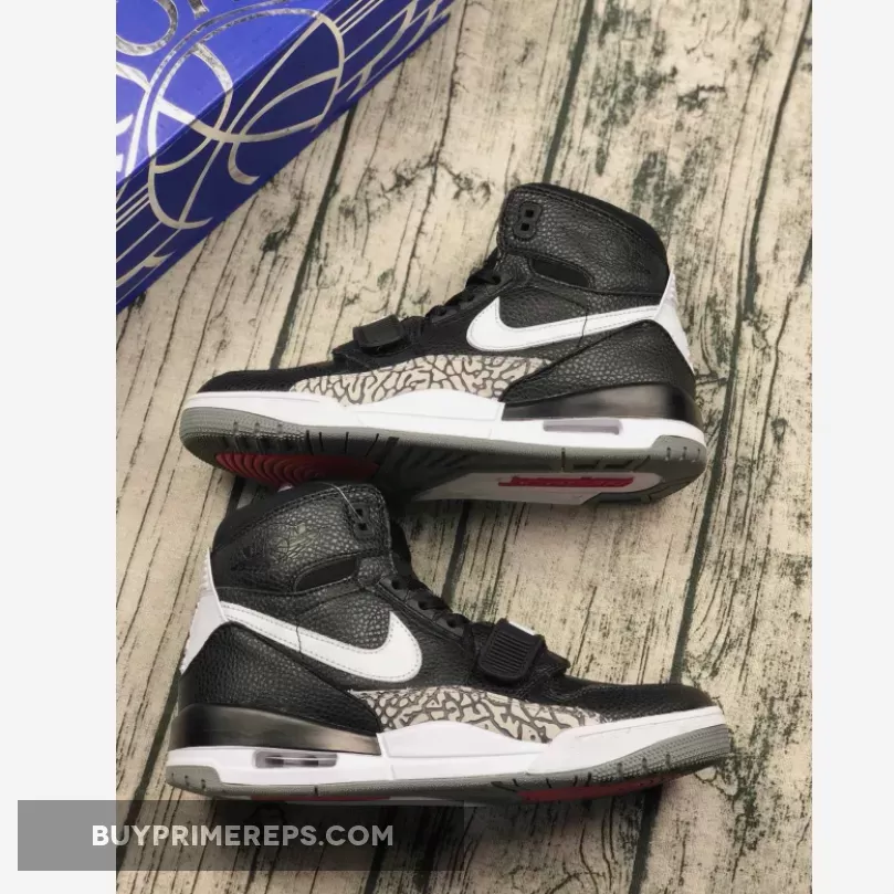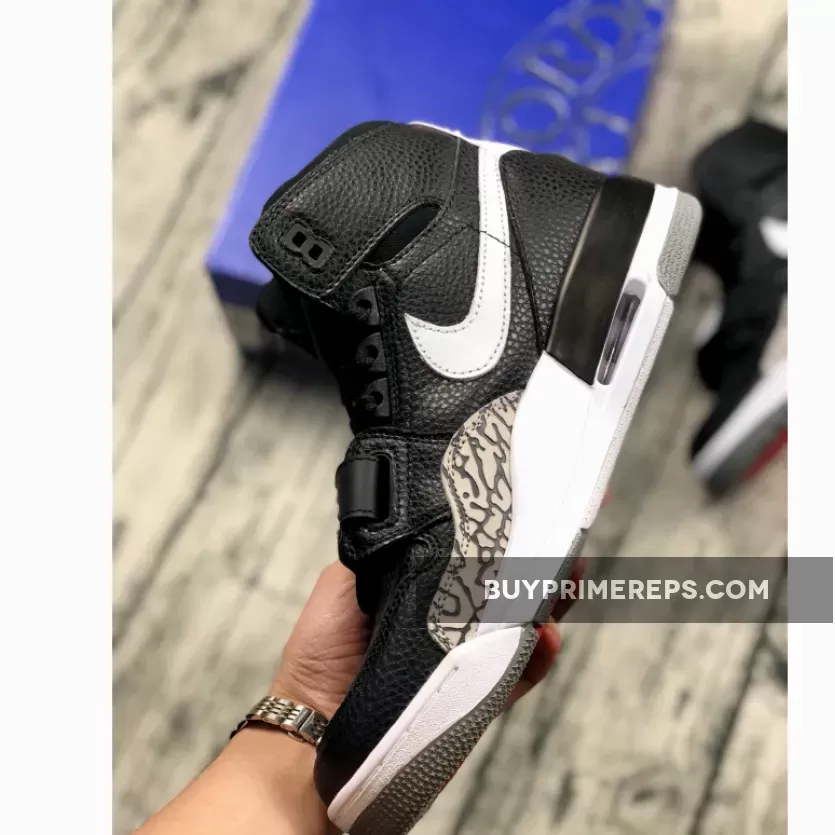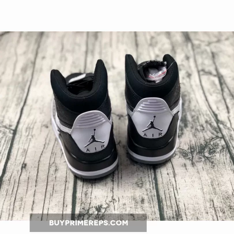 The Jordan Legacy 312 Black White is crafted with ultra-soft and premium leather, providing a luxurious and refined look. The black leather upper is complemented by elephant print overlays, giving a nod to the classic “Black Cement” Air Jordan 3. The iconic white branding adds a touch of contrast, adding to the overall aesthetic of the shoe.