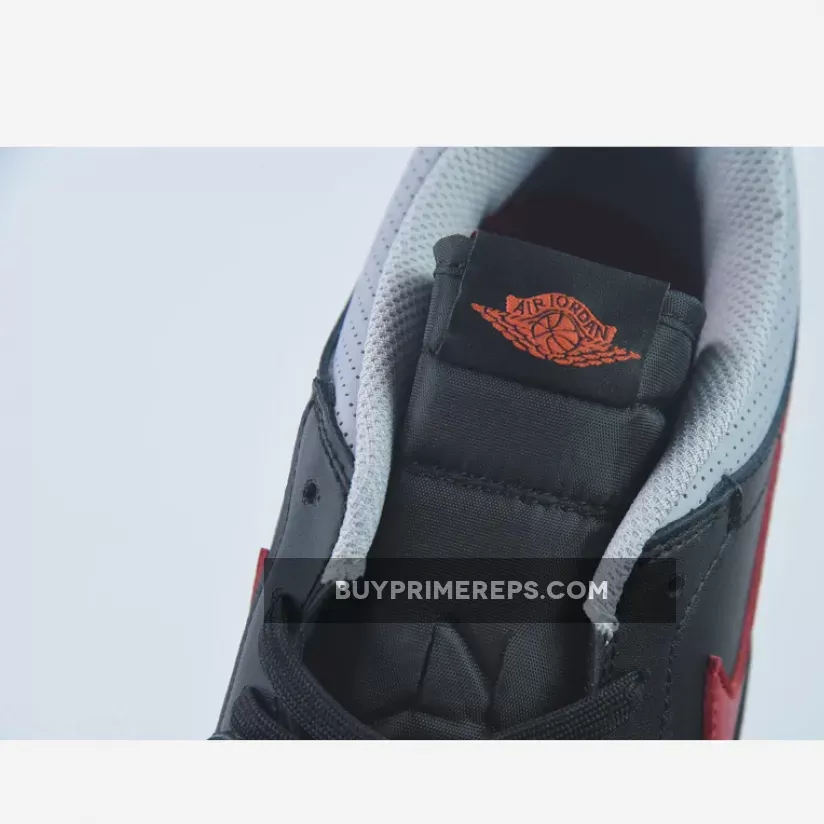 The sleek black leather upper meets vibrant red accents on the toe and Swoosh, inspired by the iconic ‘Bred’ Air Jordan 1. The elephant print on the heel nods to the beloved Air Jordan 3, while a perforated grey ankle collar adds comfort and support. 🐘