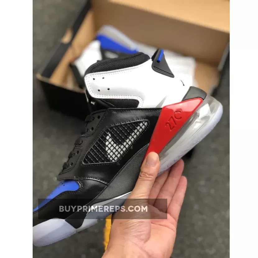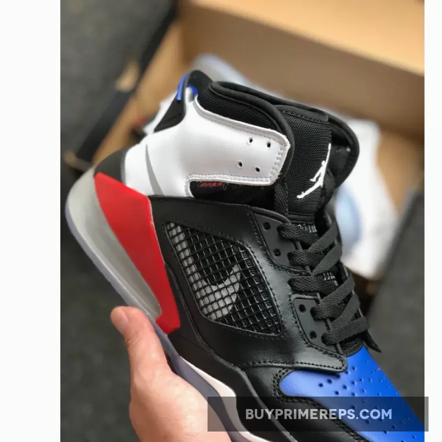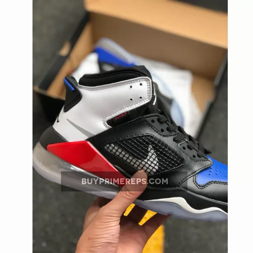 The Jordan Mars 270 Top 3 features a predominantly black upper, with mismatched detailing on the left and right shoes. The toe box on the left shoe takes inspiration from the legendary “Bred” colorway, while the right shoe gets the “Royal” treatment. This asymmetrical design adds a touch of excitement and individuality to the shoe, making it stand out from the crowd.