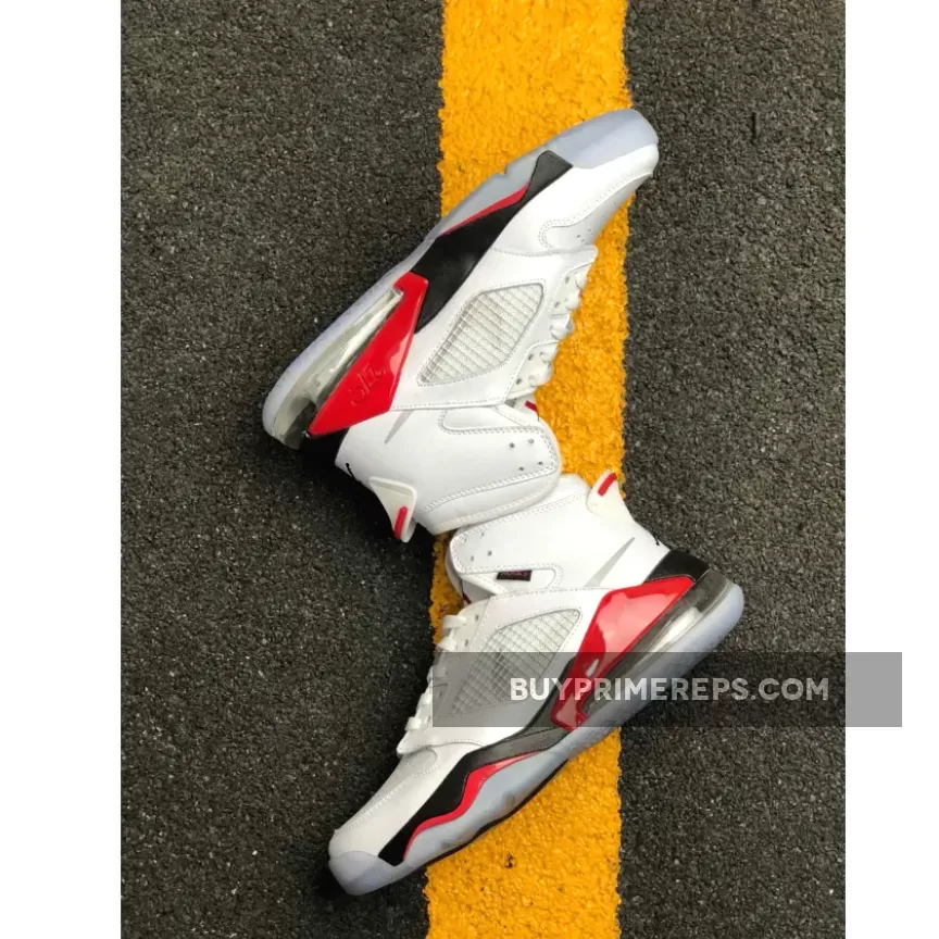 The Jordan Mars 270 Fire Red features a clean white leather upper, exuding a sense of luxury and sophistication. The premium leather panels provide a sleek and stylish look, while also ensuring durability and comfort. Red accents on the tongue and sockliner add a bold pop of color, while black detailing on the heel and Swoosh branding adds contrast and depth to the overall design.