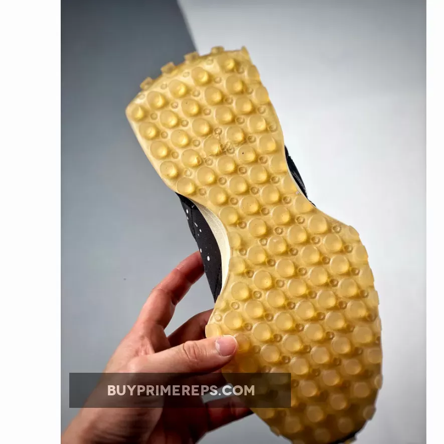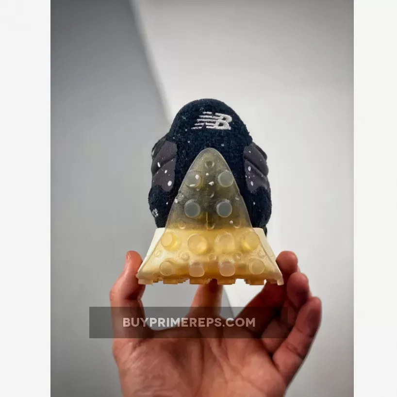 💪 The shoe features an all-black upper adorned with randomized white paint spatters, giving it a unique and eye-catching look that’s sure to turn heads. The fuzzy black suede overlays add a touch of sophistication, while the vintage-inspired cream EVA cushioned midsole and translucent outsole provide a smooth ride.