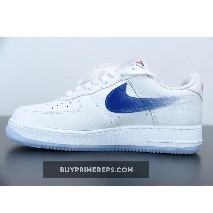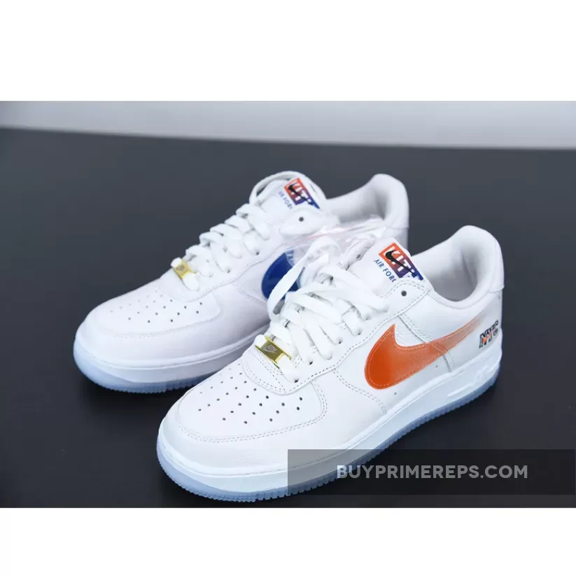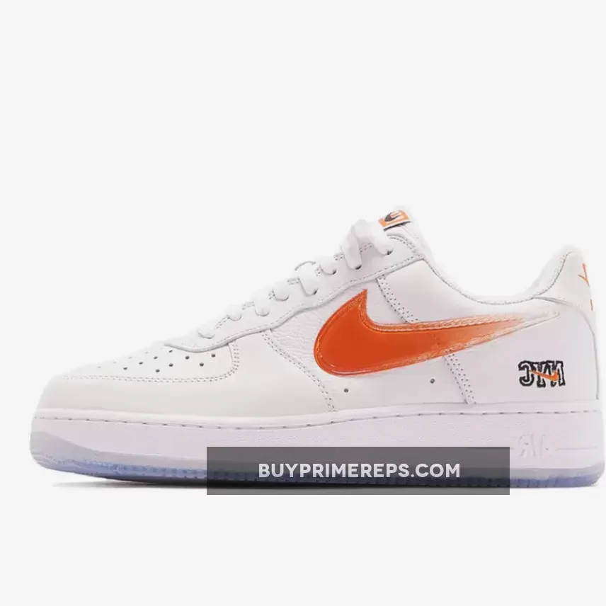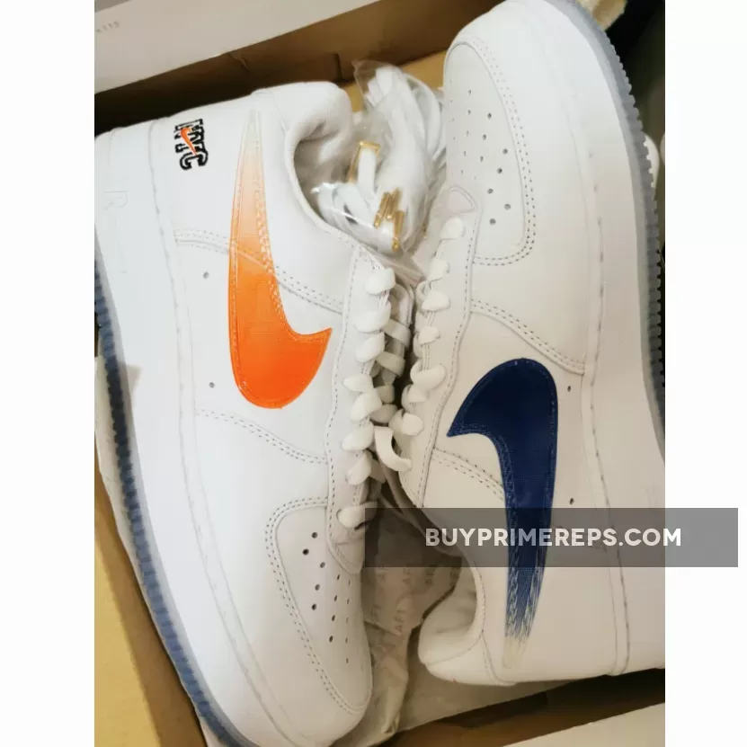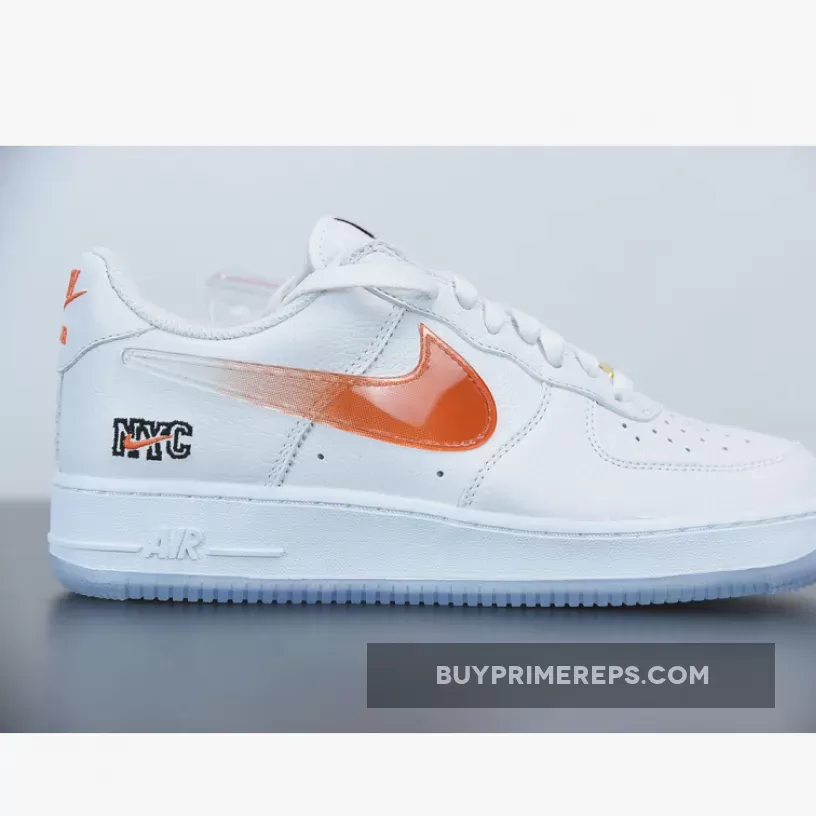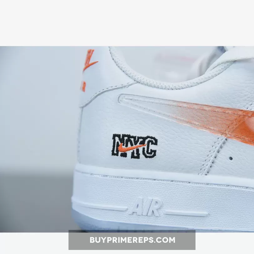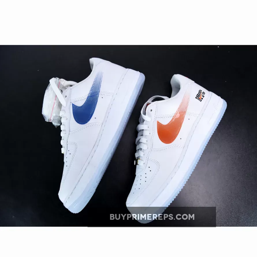 The KITH x Nike Air Force 1 Low “New York City” comes in two colorways: “Black/Team Orange-Black-Rush Blue” and “White/Rush Blue-White-Brilliant Orange.” Both pairs feature a combination of black and white leather uppers, giving them a sleek and classic look. The standout feature of these sneakers is the mismatched semi-translucent TPU Swoosh logos on the sides. One side of the shoe has a clear-to-orange gradient Swoosh, while the other side has a clear-to-blue gradient Swoosh. This unique design element adds a touch of playfulness and creativity to the sneakers.