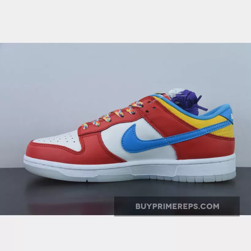 The LeBron James x Nike Dunk Low “Fruity Pebbles” is a sneaker that perfectly captures the playful spirit and vibrant colors of everyone’s favorite breakfast cereal. Inspired by LeBron James’ love for Magic Fruity PEBBLES, this collaboration between Nike and the basketball superstar is a true treat for sneakerheads and cereal enthusiasts alike.
