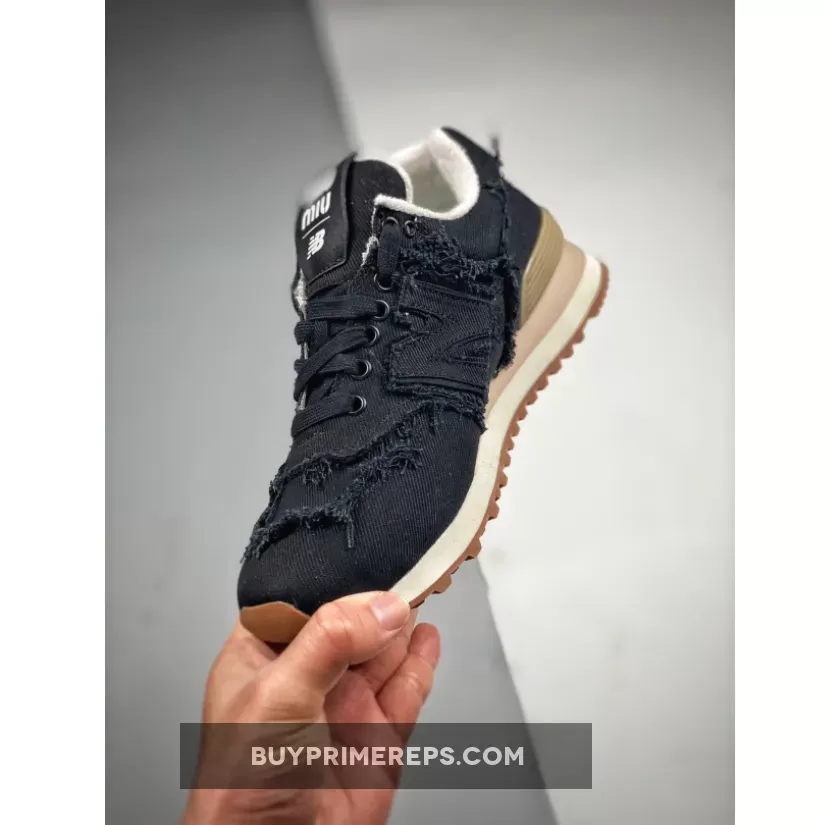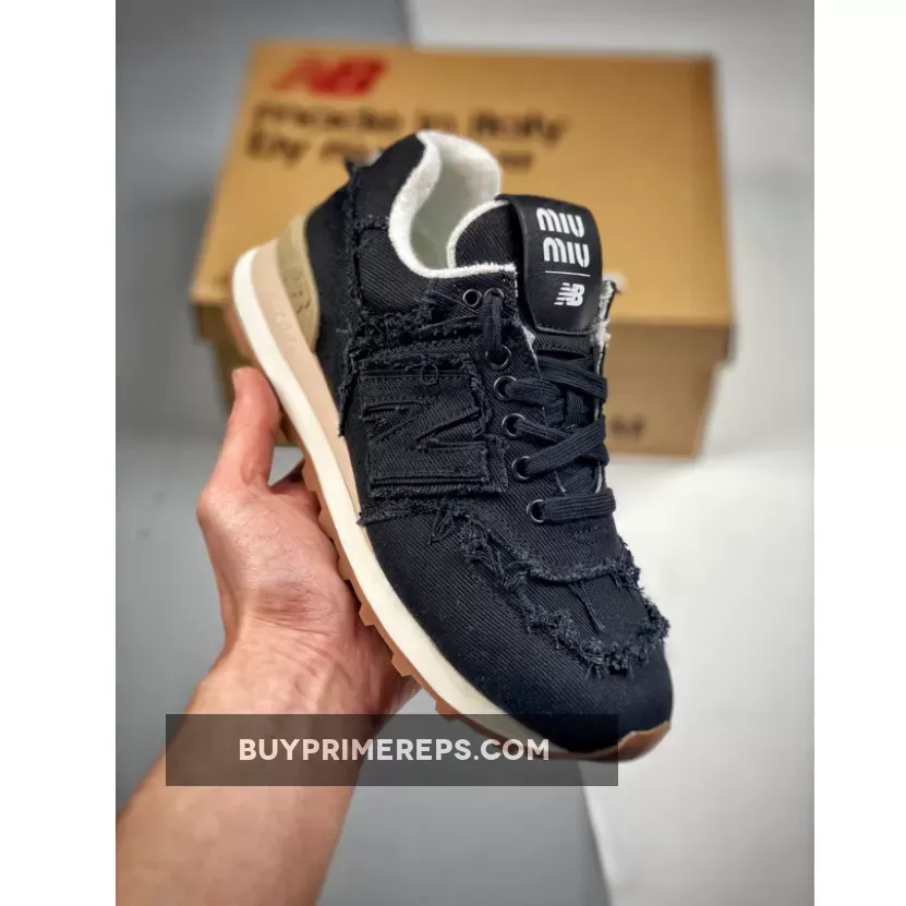 “I’m stoked with my Miu Miu x New Balance 574 Denim Royal Blue sneakers! Shipping was super fast & packaging was top-notch. The distressed denim adds a cool edge to the classic NB design. Comfortable & stylish – perfect combo for casual wear” (5/5 stars)