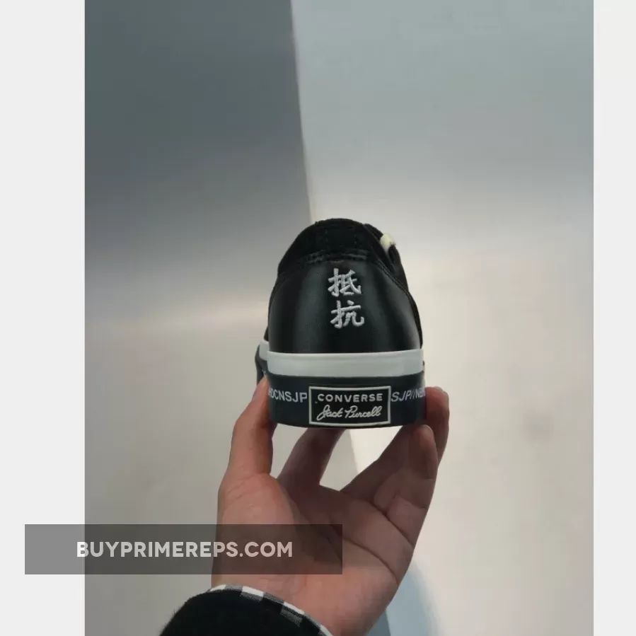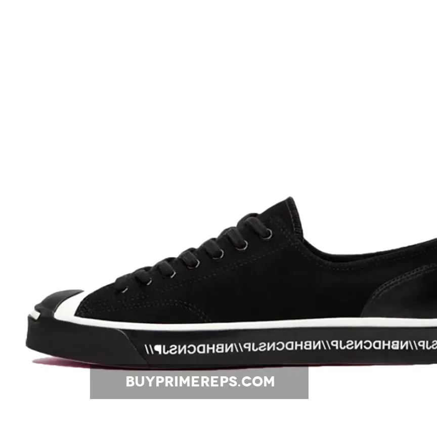 Crafted from a combination of premium leather and smooth suede, the Neigborhood x Converse Jack Purcell Black exudes luxury and quality. The black colorway gives the shoe a sophisticated and timeless appeal, making it a versatile option for any outfit. The black is complemented by white accents, adding a touch of contrast and visual interest.