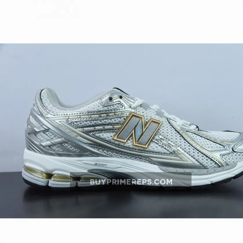 The color arrangement of this 1906R iteration is a symphony of simplicity. Crisp white, shimmering silver, and warm gold hues come together to create a neutral palette that exudes sophistication. Metallic accents elevate the overall look, adding a touch of luxuriousness to every step.