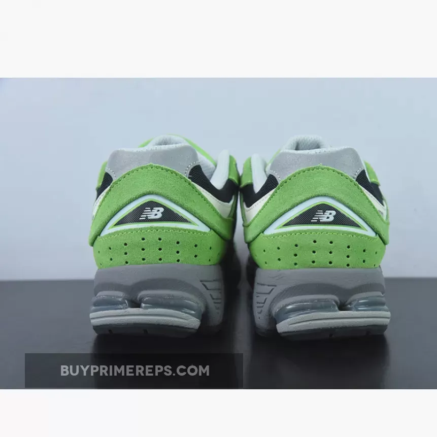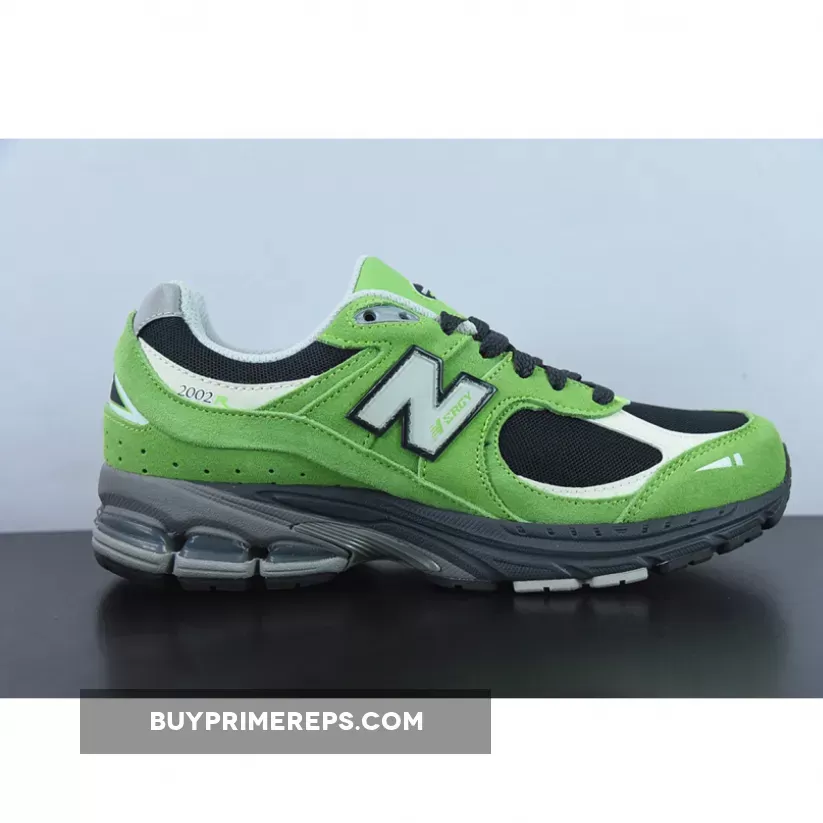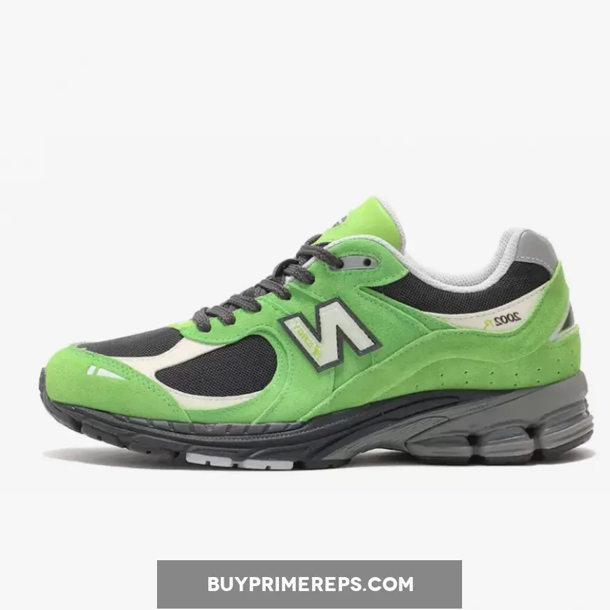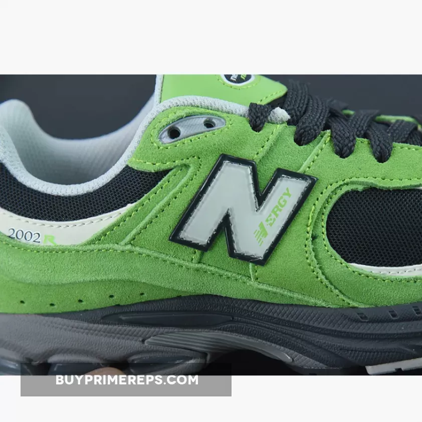The New Balance 2002R “Good Vibes Pack” Green is a striking sneaker with a vibrant touch. This sleek silhouette features a black mesh base adorned with lush green suede overlays, creating a harmonious blend of classic and contemporary. 👟
