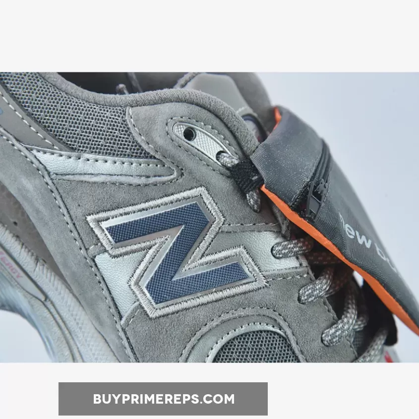 Crafted from leather mesh and suede, the upper boasts exceptional durability and comfort. The combination of olive green, gray, and navy blue creates a striking industrial palette. An innovative highlight is the inclusion of tech nylon pockets atop the eyelets, offering secure storage for small items with zippers and New Balance branding.