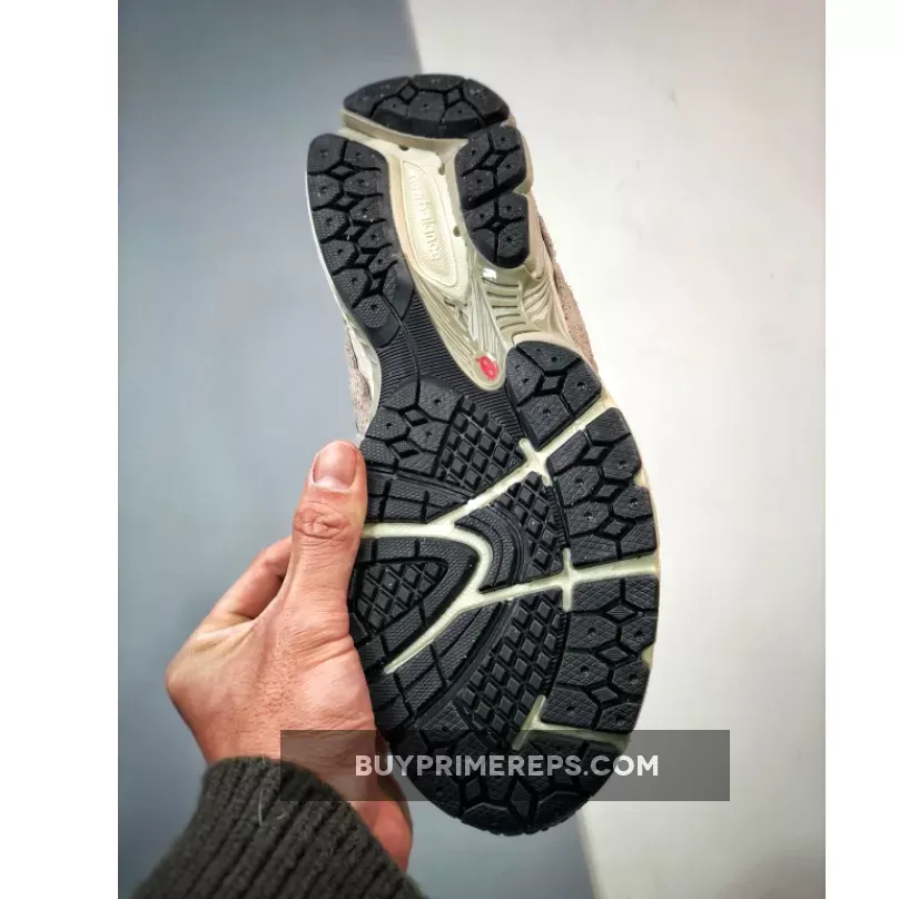 The midsole of the New Balance 2002R Protection Pack Driftwood is divided into two tones. The ABZORB cushioning unit is wrapped in a darker khaki shade, providing excellent shock absorption and support with each step. On the other hand, the ENCAP technology is covered in an off-white hue, adding a touch of contrast to the overall design. This combination of cushioning and stability ensures a comfortable and responsive ride.