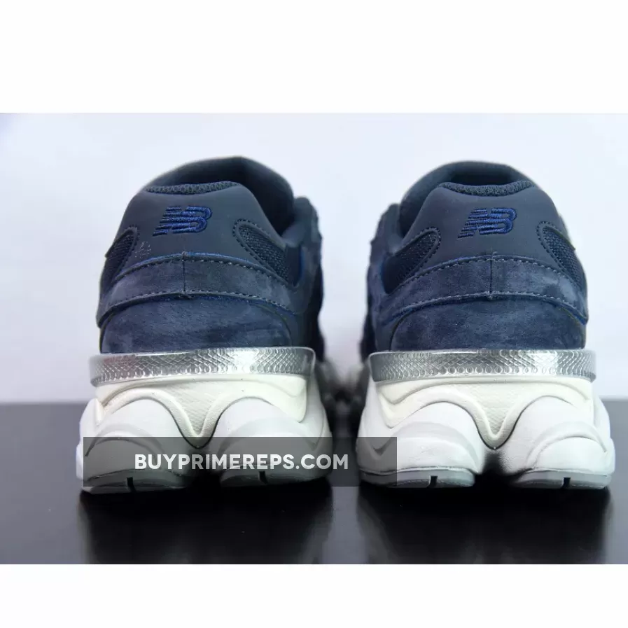 The 90-60’s upper features a unique mix of materials, including mesh and suede overlays in a stunning navy blue hue. The subtle variations in shade add depth and dimension, while grey accents along the forefoot and heel tab provide a touch of contrast. But what really sets this shoe apart is its semi-translucent heel clip, which transitions from cream to grey for a lightened effect that’s simply eye-catching.