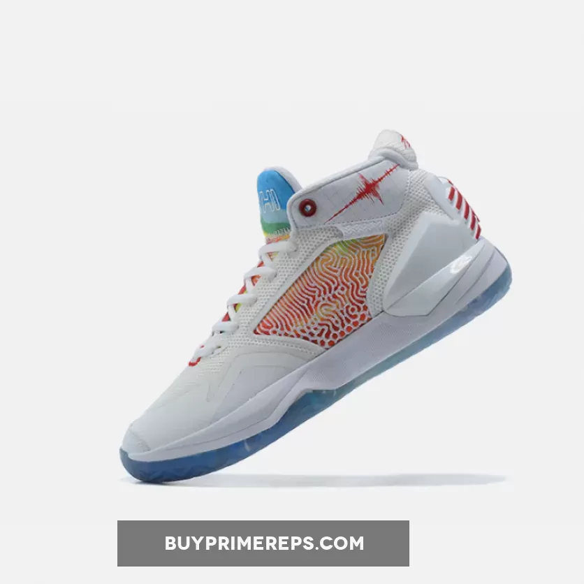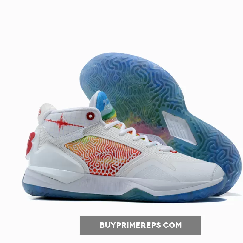 This revolutionary shoe features a striking design that combines bold colors with innovative technology. The white mesh and synthetic upper provides a sleek base, while the side panels burst with vibrant orange, blues, and reds in an abstract mosaic pattern. 🔮 As you gaze up at the tongue, you’ll be mesmerized by its watercolor-inspired hues that seem to shift and change like the Richter scale’s seismic moments! 🌊