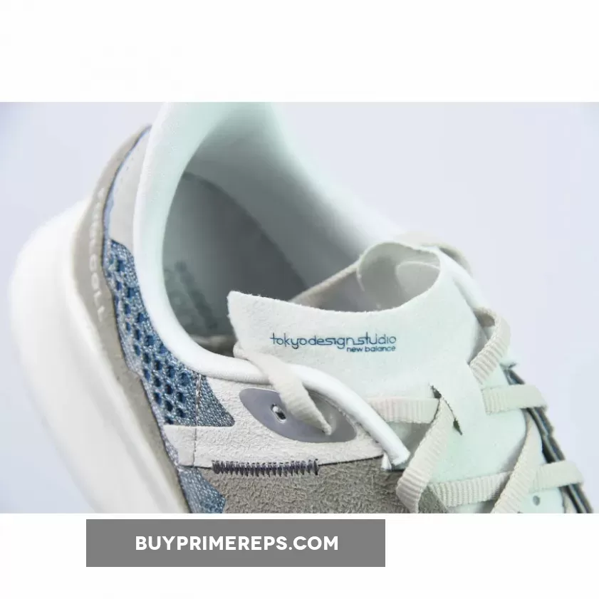 The Tokyo Design Studio collaboration brings together New Balance’s passion for innovation and Japanese fashion’s flair for the dramatic. The result is a shoe that not only delivers exceptional performance but also makes a statement on the streets. With its durable pale blue woven knit material as the base, grey suede overlays add texture and visual interest to this stunning colorway.
