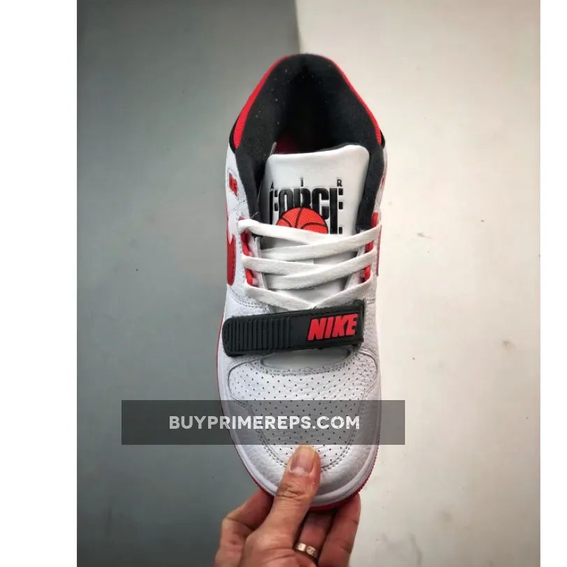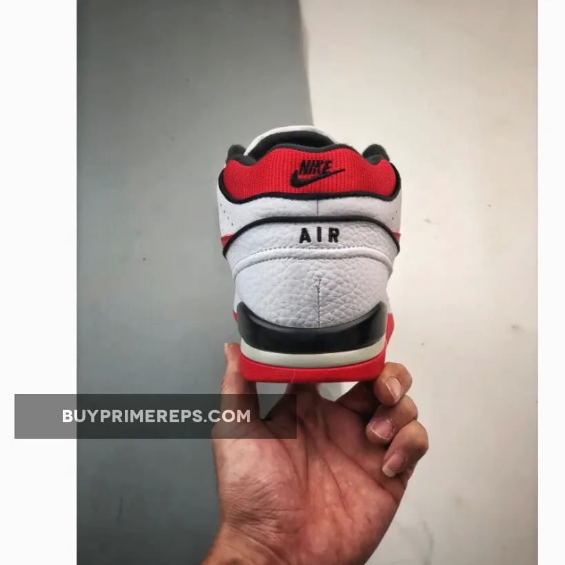The Chicago Bulls-inspired color scheme is further emphasized by the red accents on the ribbed mesh collar, Swoosh logos, and outsole. These vibrant pops of red add a bold and eye-catching element to the overall design. The tongue of the shoe proudly displays the Air Alpha Force branding, complete with an orange basketball logo underneath.