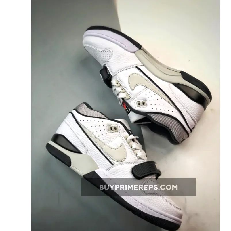 The Air Alpha Force 88 “White Grey” boasts a clean and classic aesthetic, with a white leather upper that extends from the heel to the toe. Adding a touch of subtle contrast, light grey accents can be found on the signature Swoosh logos adorning the sides, as well as on the mesh collar and eye stays. The midfoot features black midfoot hook-and-loop straps, which not only provide a secure fit but also add a striking visual element to the design. The oversized “Force” branding on the tongues and the TPU heel clip are also rendered in black, further enhancing the shoe’s overall aesthetic appeal.