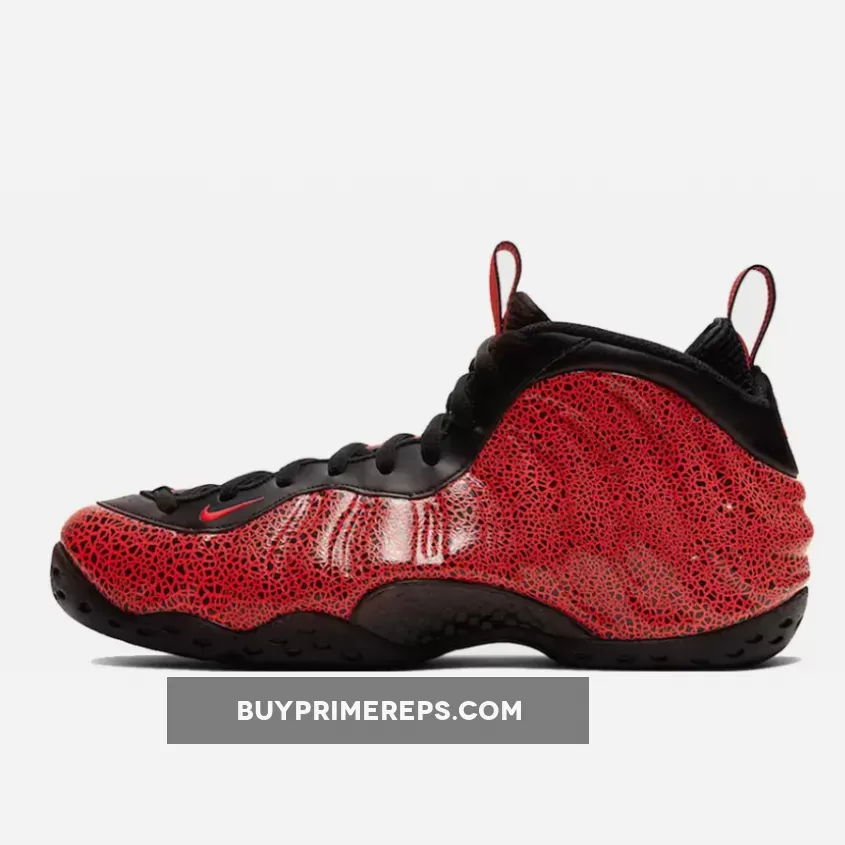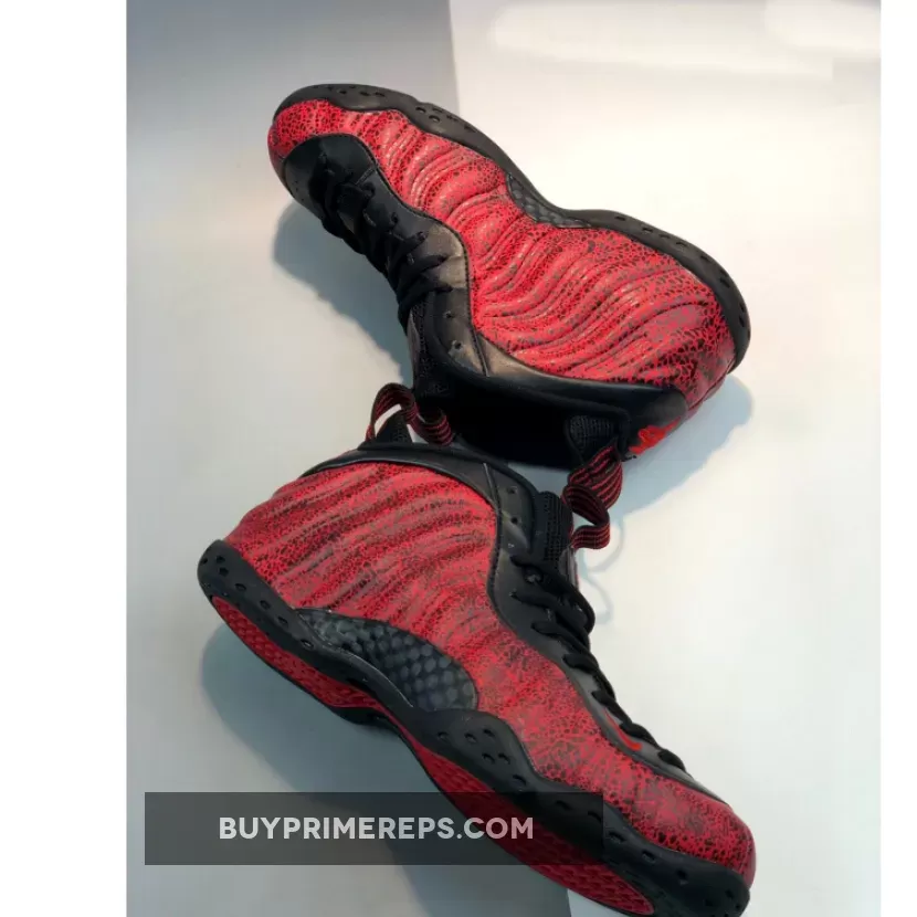 The standout feature of the Air Foamposite One Lava is the lava-styled design that covers the foam shell. This unique pattern adds a dynamic and fiery element to the shoe, making it a true statement piece. The lava design is bold and vibrant, perfectly complementing the black and crimson color scheme.