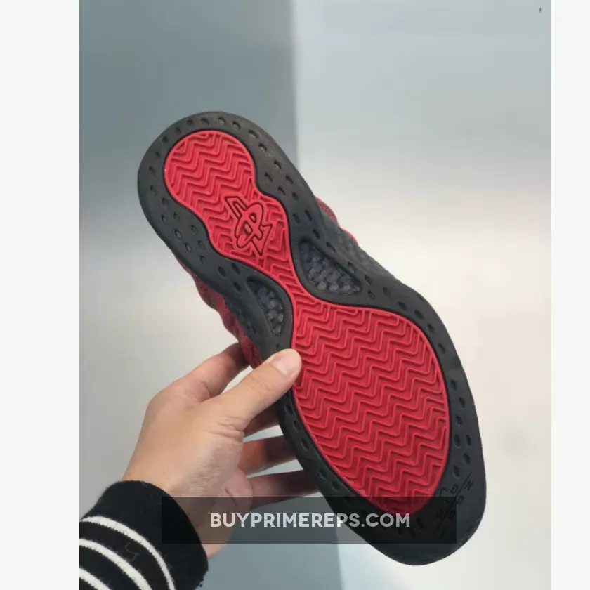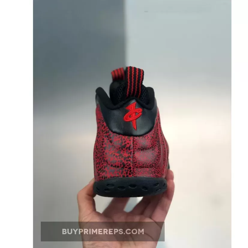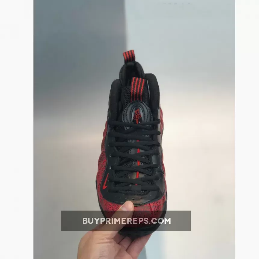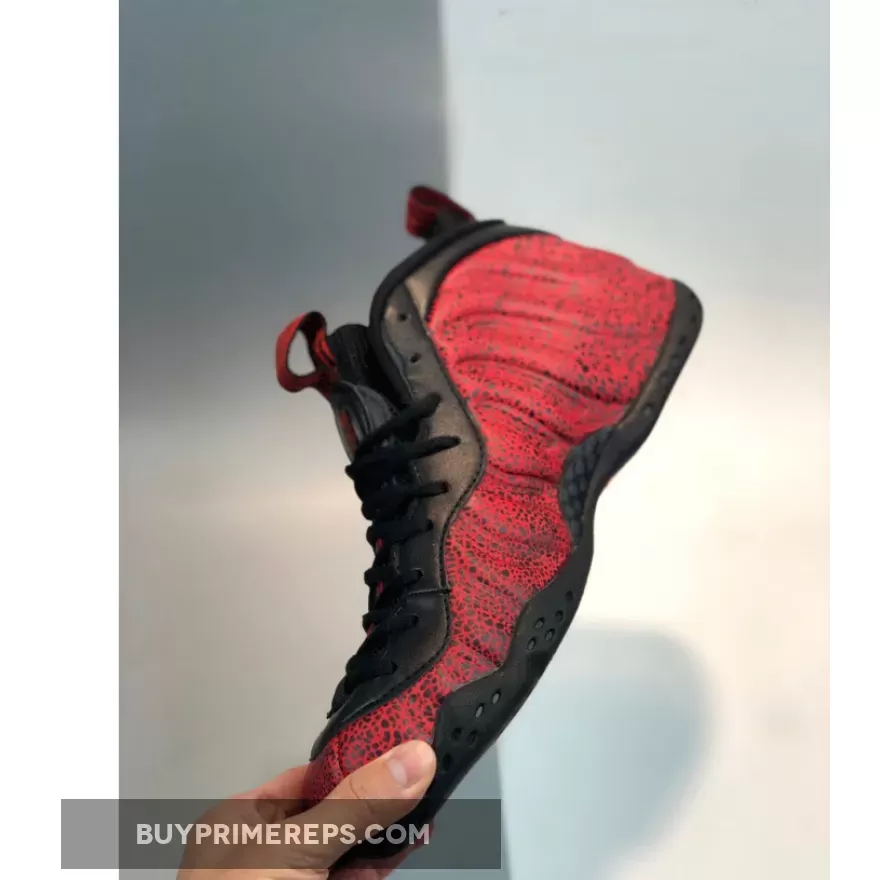 The Air Foamposite One Lava features a black leather upper, giving it a classic and timeless look. The mesh tongues add a touch of breathability, ensuring that your feet stay cool and comfortable all day long. The shoe is adorned with contrasting crimson accents throughout, adding a pop of color and visual interest.