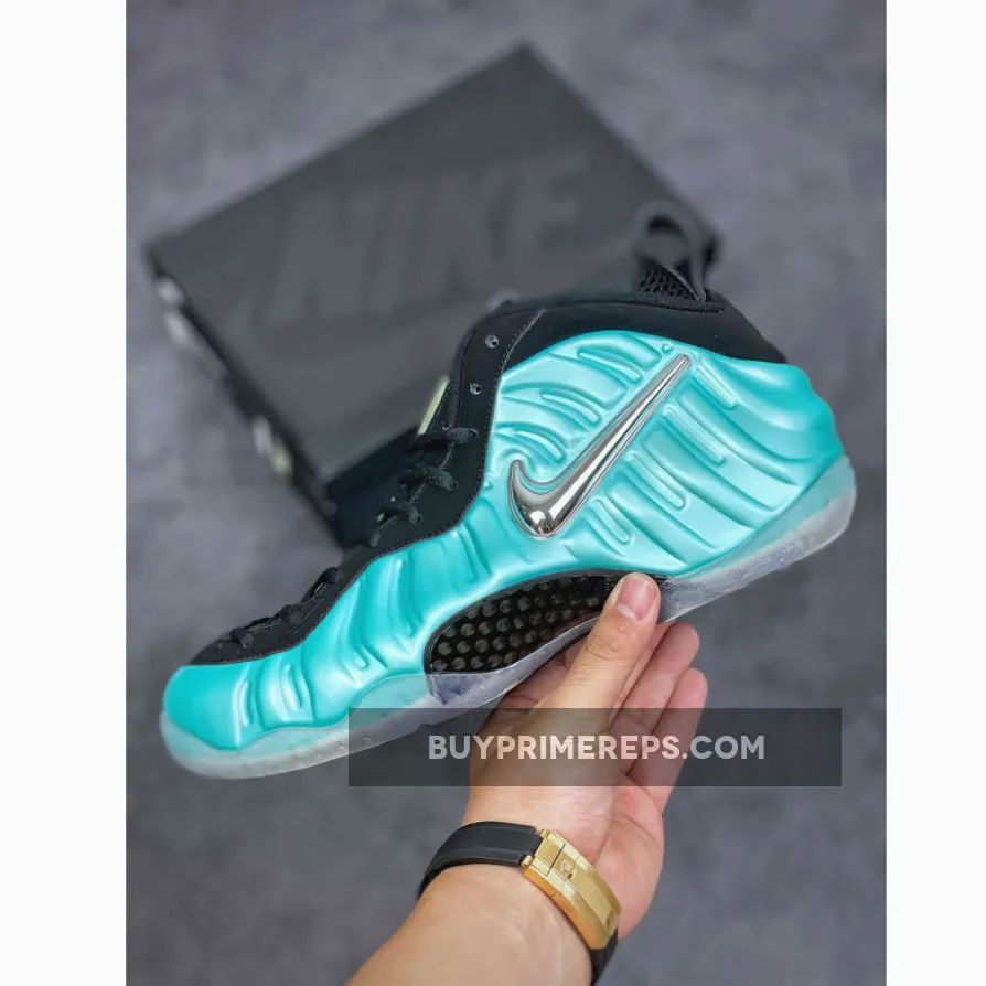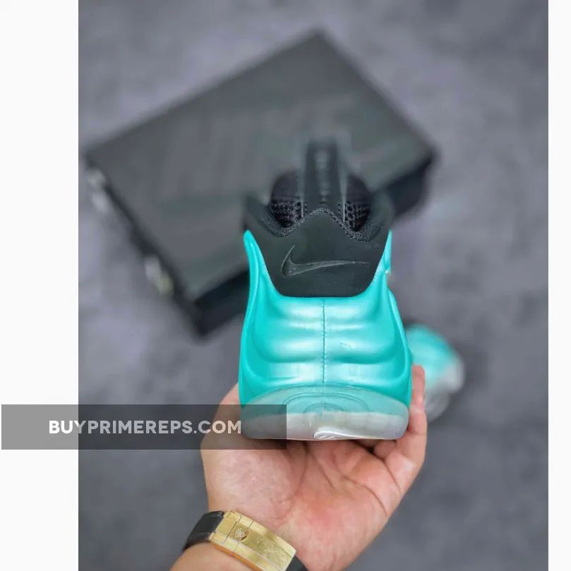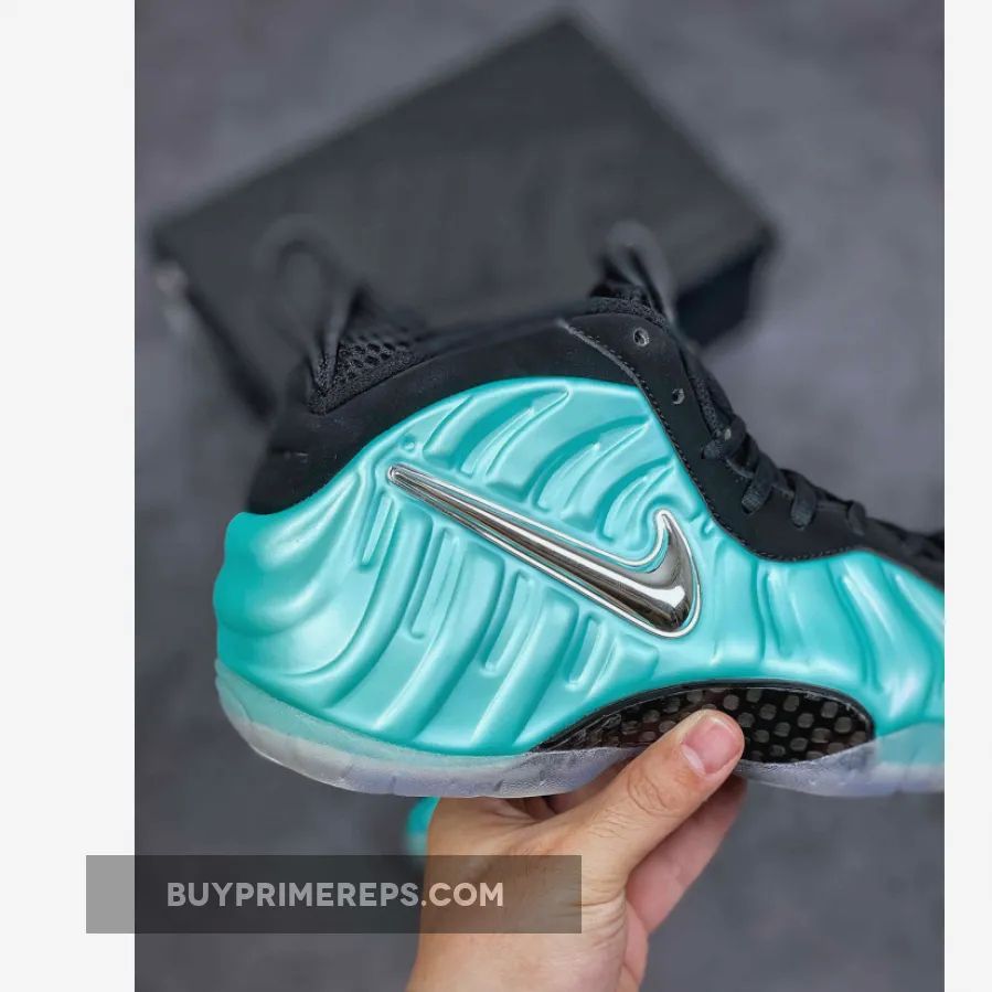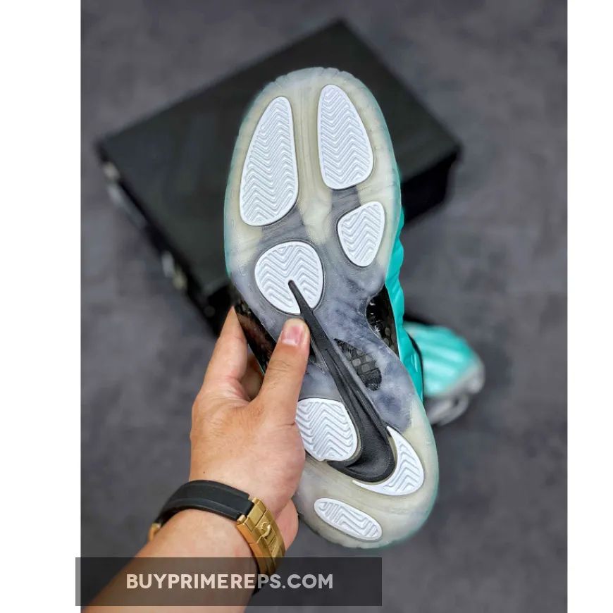 A standout feature of the Nike Air Foamposite Pro Island Green is the metallic chrome Swoosh that adorns the sidewall, adding a touch of opulence and a reflective element that catches the light. This attention to detail and unique design elements set this sneaker apart, making it a must-have for sneaker enthusiasts and collectors alike.