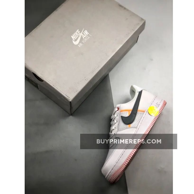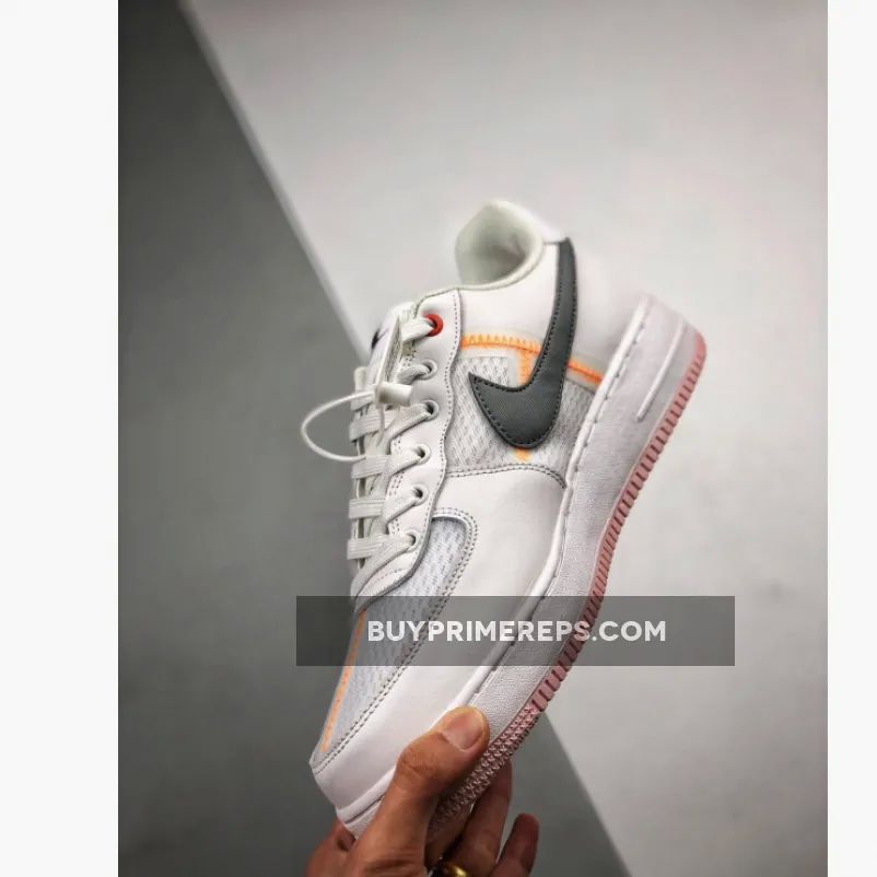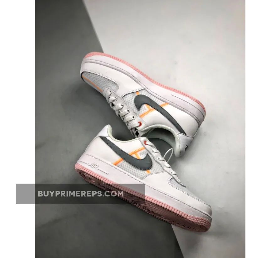 One of the standout features of this Air Force 1 is the deconstructed elements that are incorporated into the design. Visible stitching can be seen on the lateral and medial side panels, as well as on the toe box, adding a unique and modern touch. The stitching is done in a light orange hue, complementing the white and crimson color scheme perfectly.