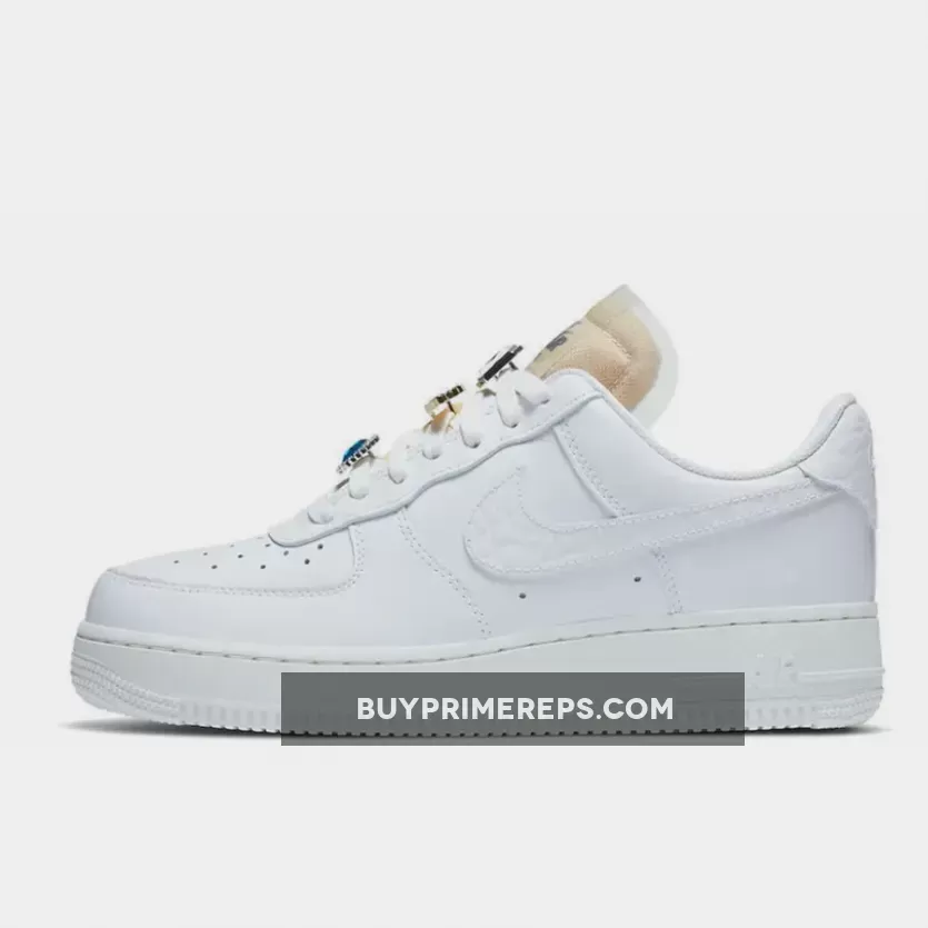 Introducing the Nike Air Force 1 07 LX White Onyx CZ8101-100, a stunning sneaker that combines classic style with luxurious details. The shoe features a clean and sleek white leather upper, giving it a timeless appeal. But don’t be fooled by its seemingly laid-back appearance, because this Air Force 1 comes with some eye-catching elements that will surely turn heads.