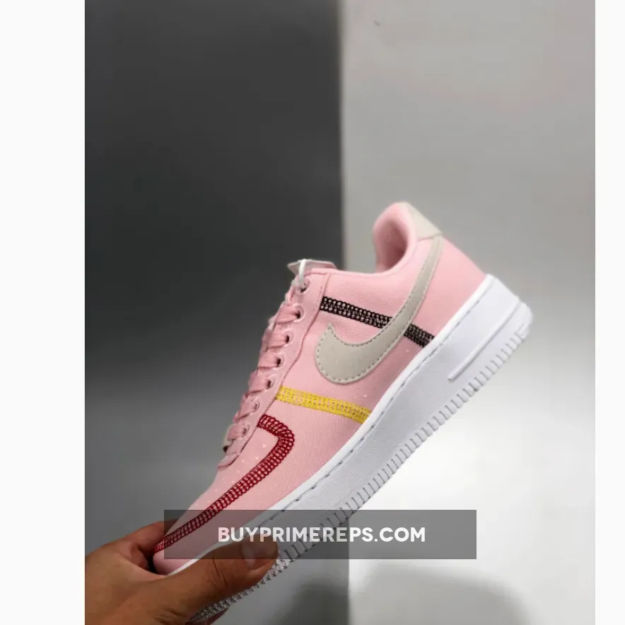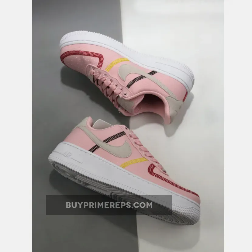 One of the standout features of this Air Force 1 iteration is the attention to detail. The sneaker is adorned with contrast stitch detailing along the forefoot and midfoot, adding a touch of craftsmanship and visual interest. The stitching is done in shades of red, yellow, and black, creating a dynamic and eye-catching effect.