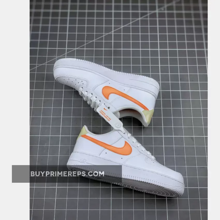 Versatility is key with this white and orange Air Force 1. It can be effortlessly styled with a variety of outfits, making it a go-to choice for any occasion. During the colder months, you can pair it with mom jeans, cargos, or sweats for a casual and trendy look. In the summer, opt for a floral dress or a colorful co-ord set to showcase the vibrant colors of the sneaker.