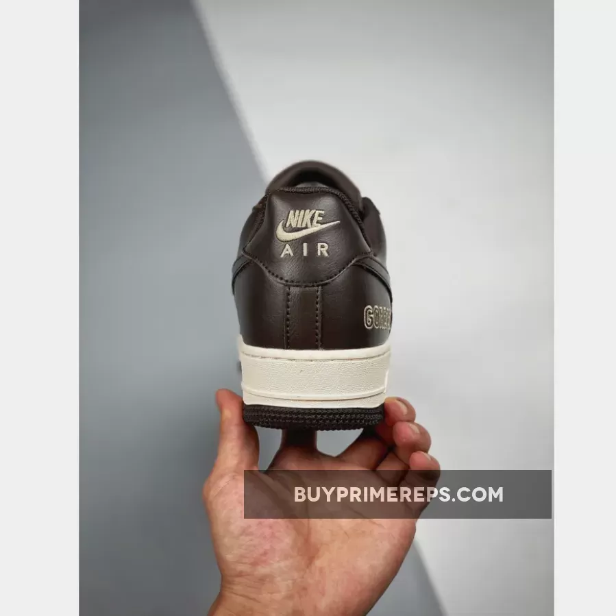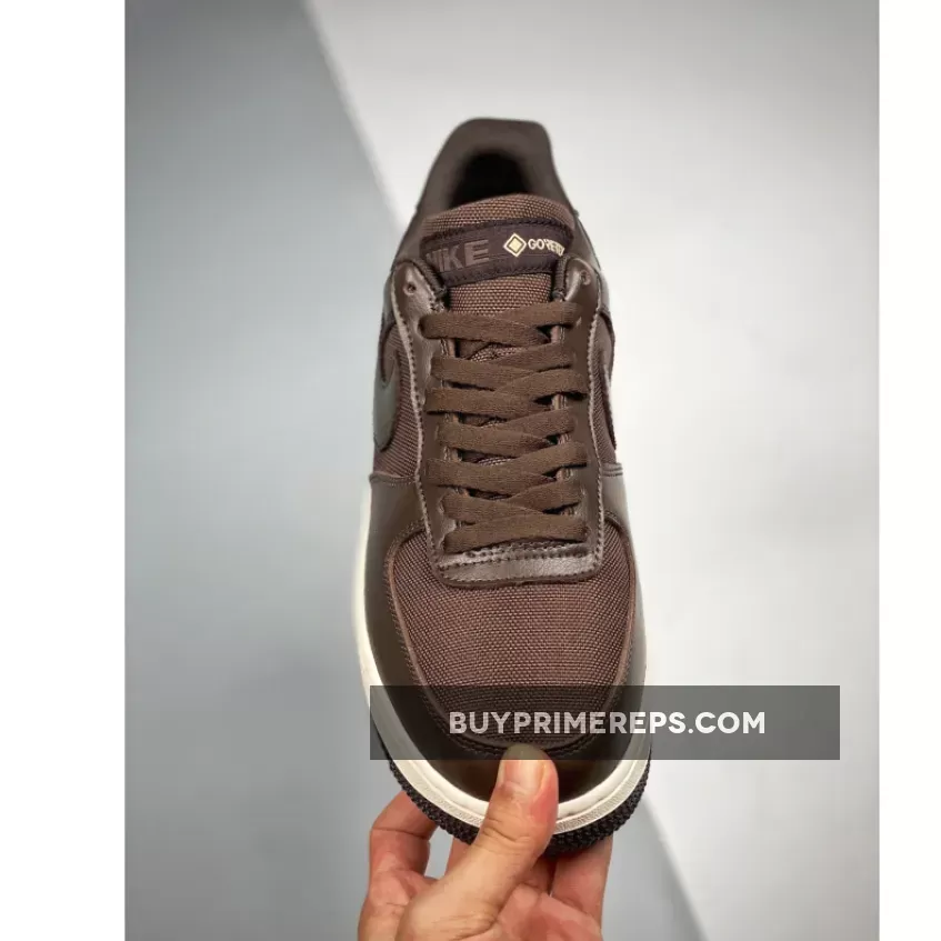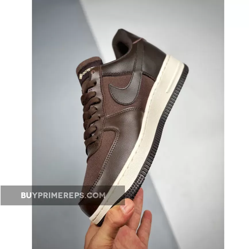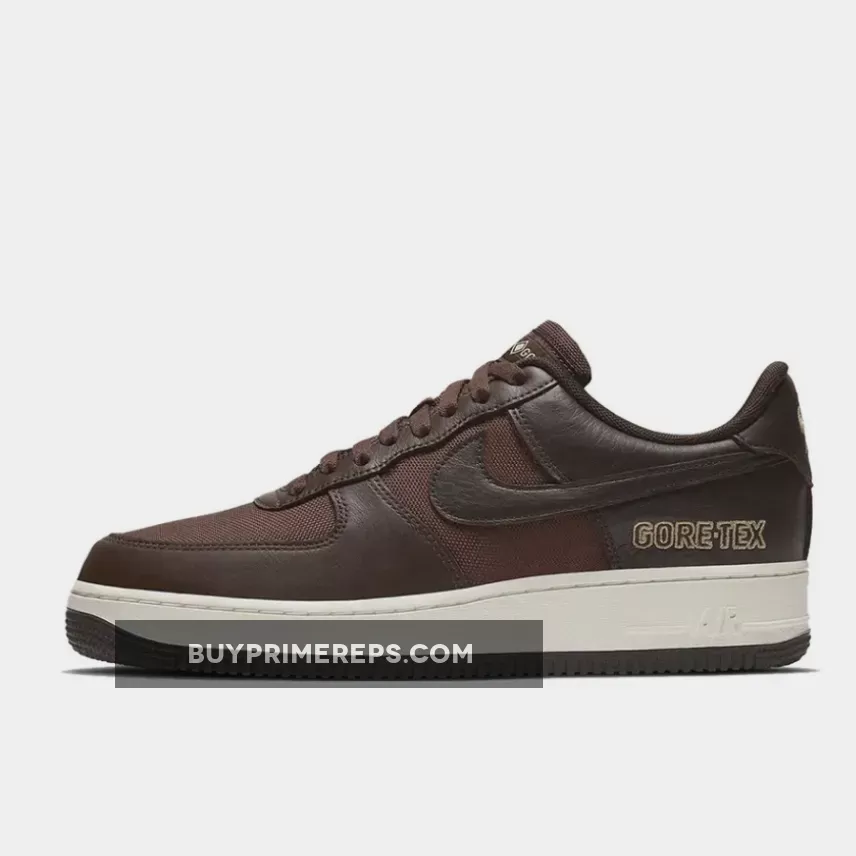 The upper of the Nike Air Force 1 Gore-Tex Baroque Brown is constructed with a combination of mesh and leather materials. The mesh provides breathability, while the leather overlays add durability and support. The Baroque Brown colorway gives the shoe a sophisticated and earthy look, while the Seal Brown and Team Gold accents add a touch of contrast.