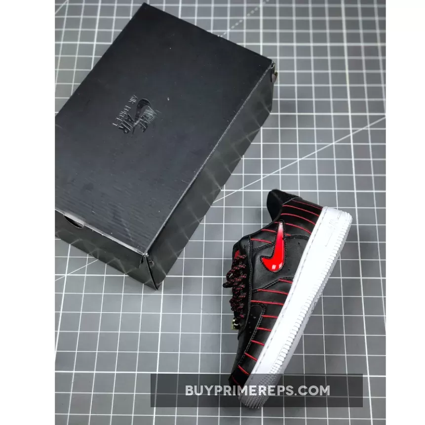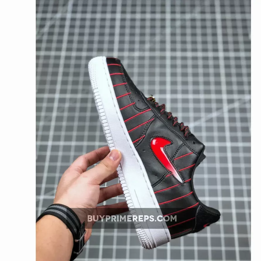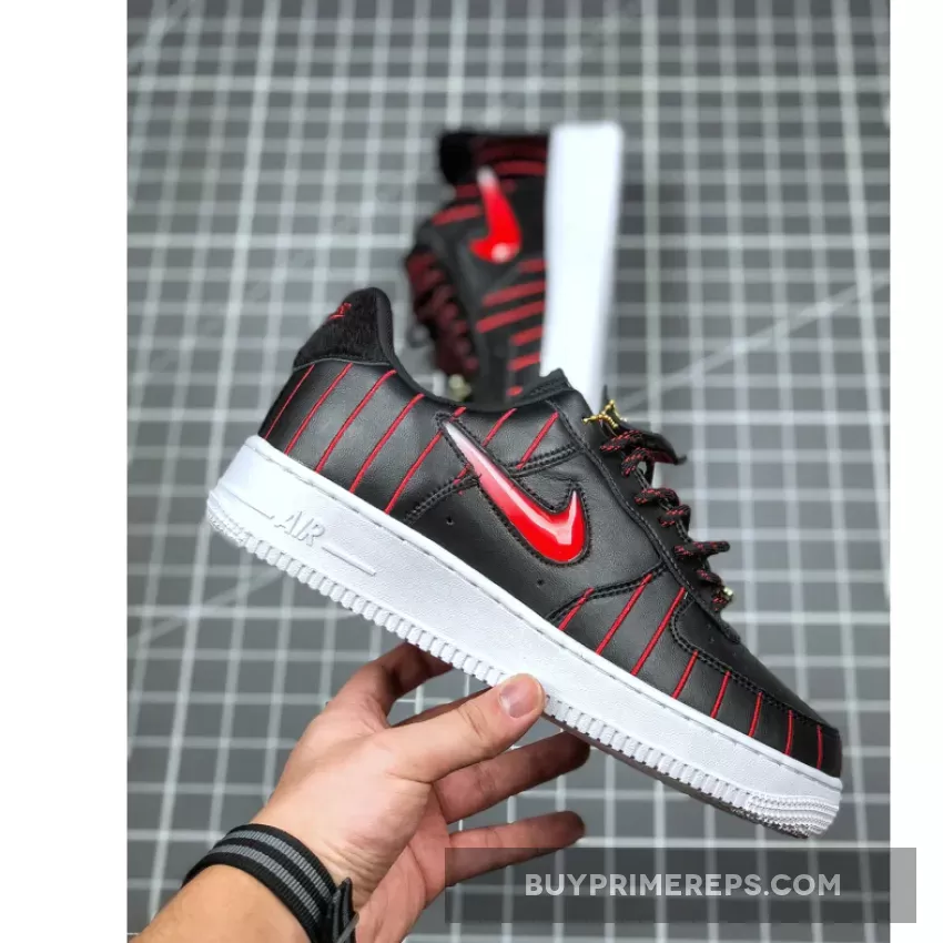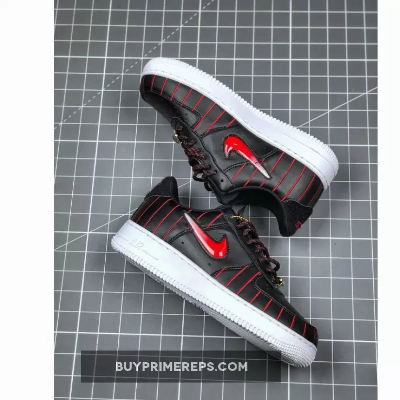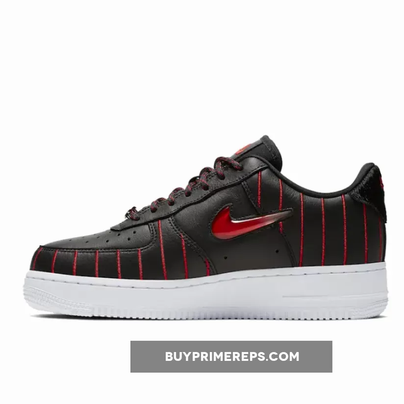 The Air Force 1 Jewel Chicago is a unique twist on the classic Air Force 1 silhouette. Designed by Sean McConnell, this version features a Jewel Swoosh, which is a sidewall embellishment that has been used on various designs. However, the red and black stripes that extend across the premium leather uppers make this pair truly stand out. The contrasting colors of white, black, and red perfectly capture the Chicago Bulls’ color scheme and add a bold and eye-catching element to the shoe.