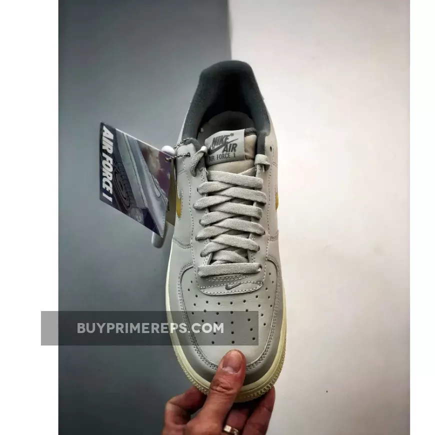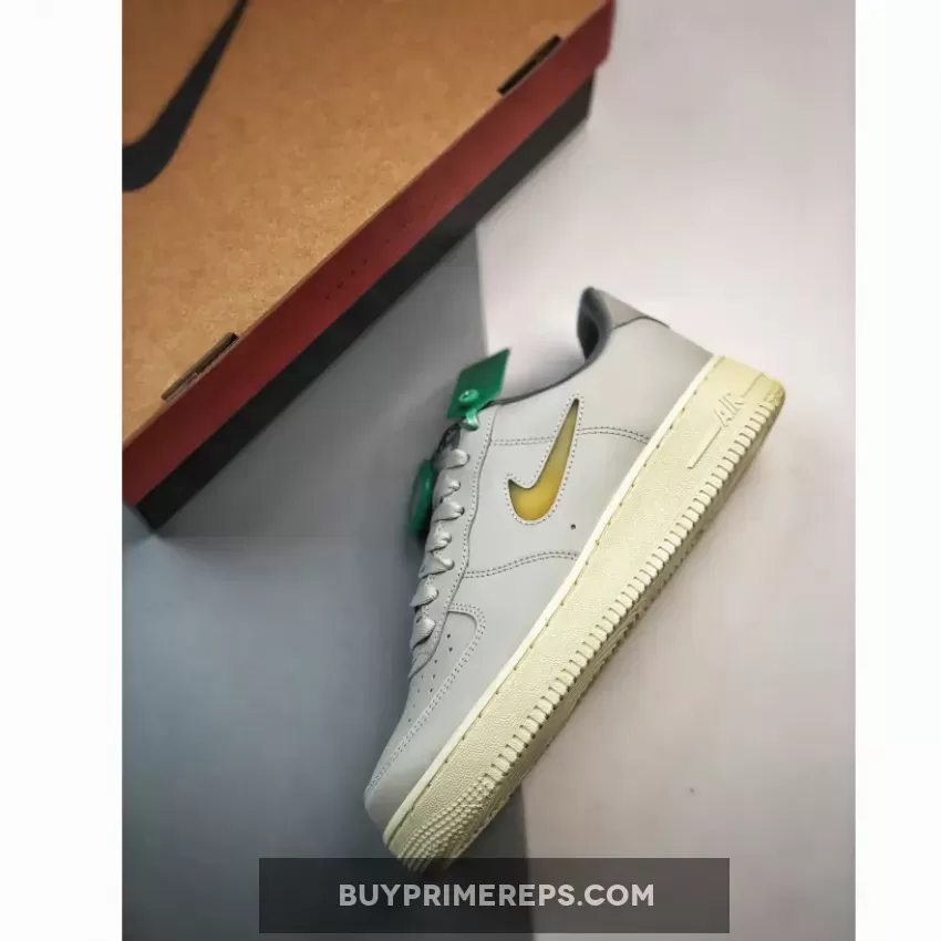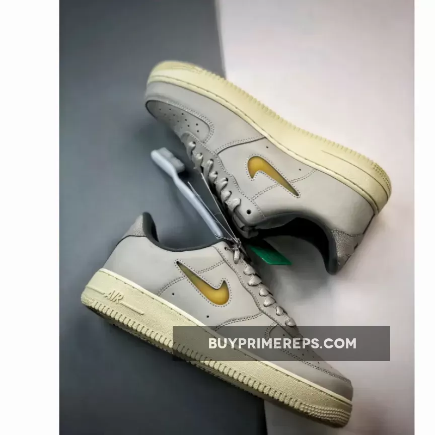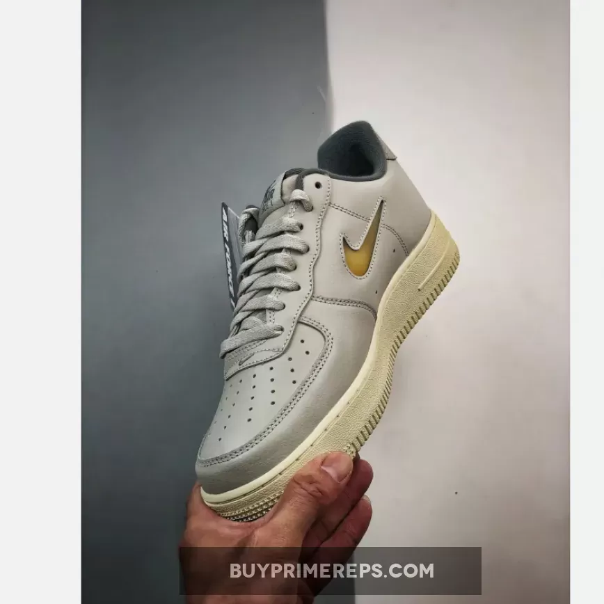 The Air Force 1 Low Jewel Light Bone features a grey tumbled leather upper that exudes a sophisticated and refined look. The subtle texture of the leather adds depth and dimension to the shoe, making it stand out from the crowd. The light bone colorway gives it a versatile and timeless appeal, making it easy to pair with a wide range of outfits.