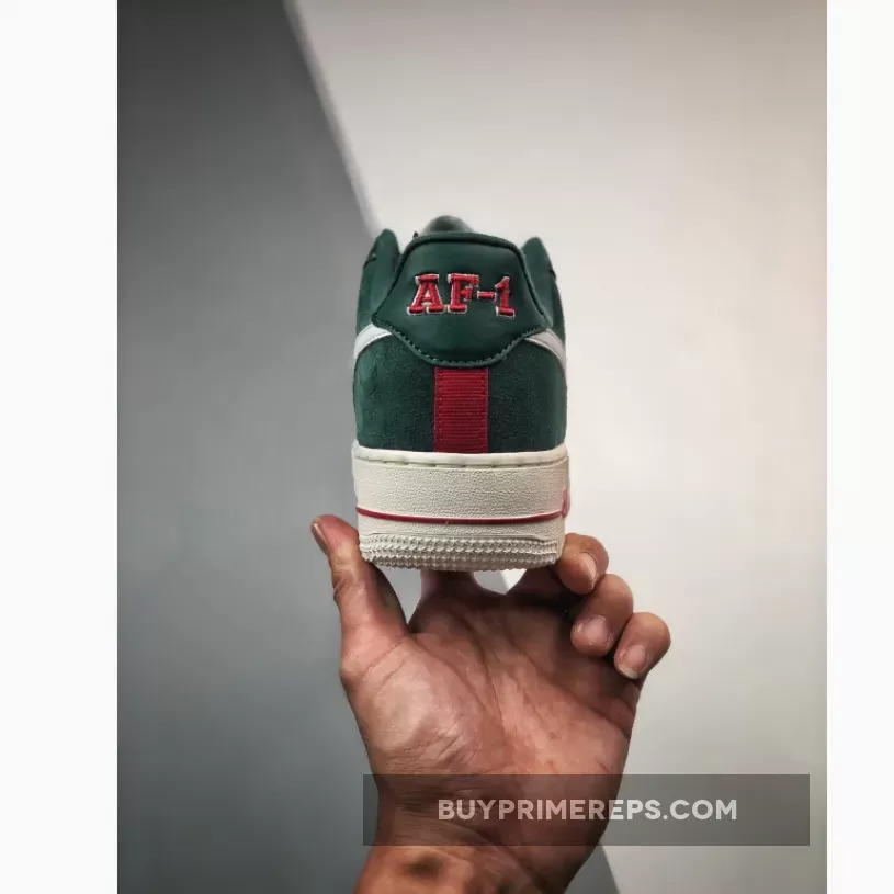 The attention to detail on this sneaker is impeccable. The green leather heel tab features embroidered AF1 branding, while a fabric stripe runs down the spine of the heel, adding an interesting and unique touch.