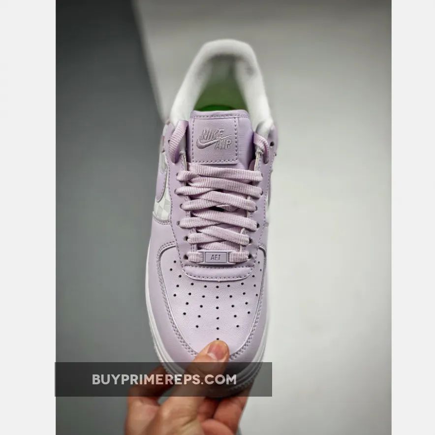Introducing the Nike Air Force 1 Low Barely Grape, a stylish and contemporary take on a classic sneaker silhouette. This version of the iconic Air Force 1 features a stunning flight purple tint that covers the upper, giving it a unique and eye-catching look. The usual perforation and layer detailing at the front of the sneaker adds depth and texture to the design.