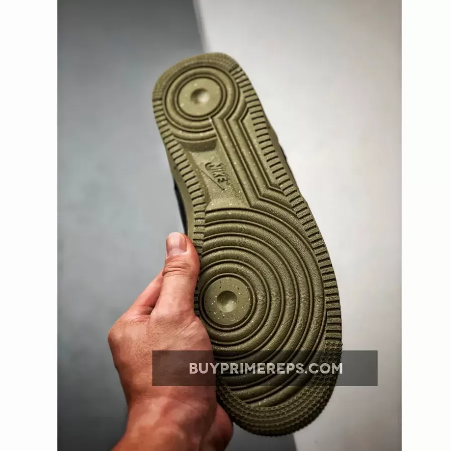 The Nike Air Force 1 Low Black Olive FJ4160-001 is completed with a Neutral Olive Nike Regrind sole. This unique sole not only adds an extra element of style but also contributes to the shoe’s durability. The rubber outsole provides excellent traction, ensuring stability and grip on various surfaces.