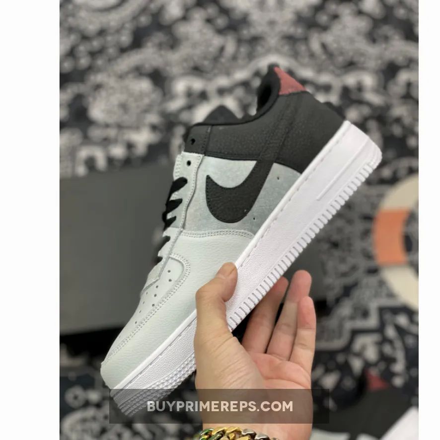 Featuring a full-grain leather upper, this Air Force 1 showcases a triad of colors that adds depth and dimension to its design. The toe box is adorned in a platinum grey hue, while smoke grey covers the quarter panels, and black dominates the rear panels. This combination of colors creates a visually striking contrast that is sure to turn heads. Additionally, red accents on the tongue and heel tab provide a subtle pop of color that adds a touch of vibrancy to the overall aesthetic.